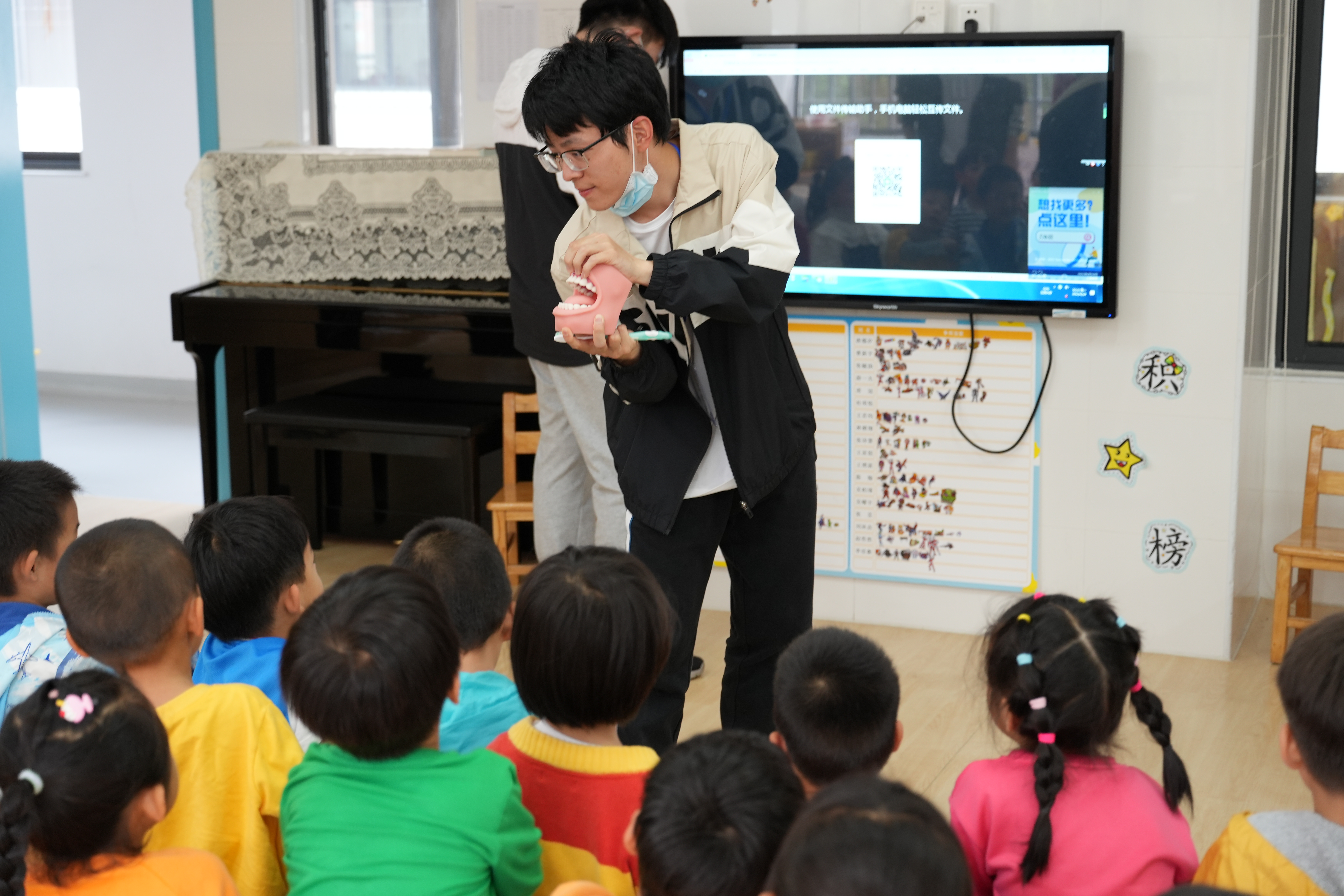 活动分四组在不同的班级进行,分别围绕保护视力、均衡饮食、爱护牙齿为主题进行健康宣教,翔安分园的小朋友们在精彩的讲解中掌握了保护视力的方法;了解了合理膳食、食品安全的相关知识;学习了牙齿常见的问题和如何进行牙齿护理的方法。小朋友们在灵活多样的授课方式和形式丰富的互动中收获了健康知识,反响热烈。