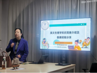 活动现场,医学院生理学知识竞赛负责人周宇老师为在场学生提供了关于我院承办校级英文生理学知识竞赛及组织学生参加国内和国际英文生理学知识竞赛的历史回顾。她概述了我院在国内外生理学竞赛中的参与历程及荣誉成就,并通过生动案例,使学生们对竞赛有了深刻的认识。周老师进一步深入剖析了校级、国内和国际竞赛的不同特点,细致解读了题型差异,并基于此对比分析,为学生指明了备考方向,提供了精准的备赛策略。她强调,尽管备赛过程充满挑战,需要大量个人时间的投入,但看到学生们在医学知识上的提升和个人成长中的自信增强,她坚信这些努力是极具价值的。周老师的发言不仅鼓舞了学生,也突显了参与竞赛对个人发展的积极影响。