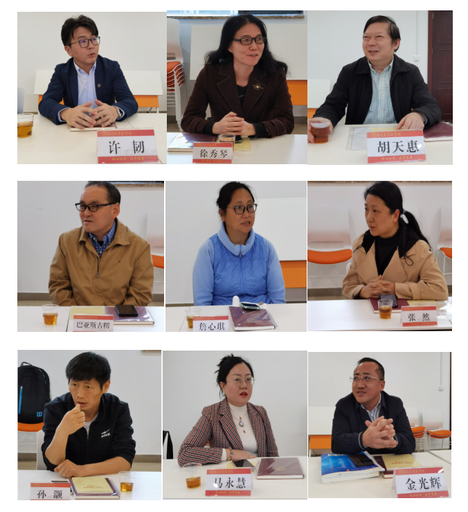 中国农工民主党党员许韧老师、徐秀琴老师、胡天惠老师、巴亚斯古楞老师、詹心琪老师、张然老师,中国致公党党员孙灏老师,九三学社社员马永慧老师和无党派人士代表金光辉老师结合本职工作,围绕学院中心工作及教职工关心的问题逐一发言,献计献策。