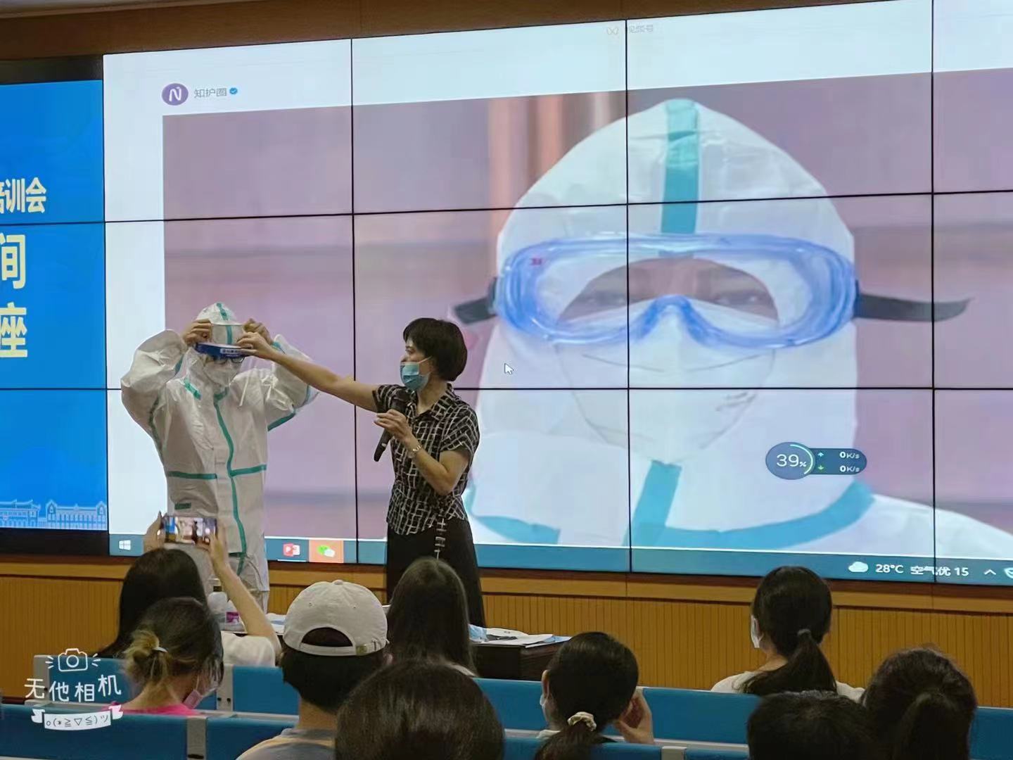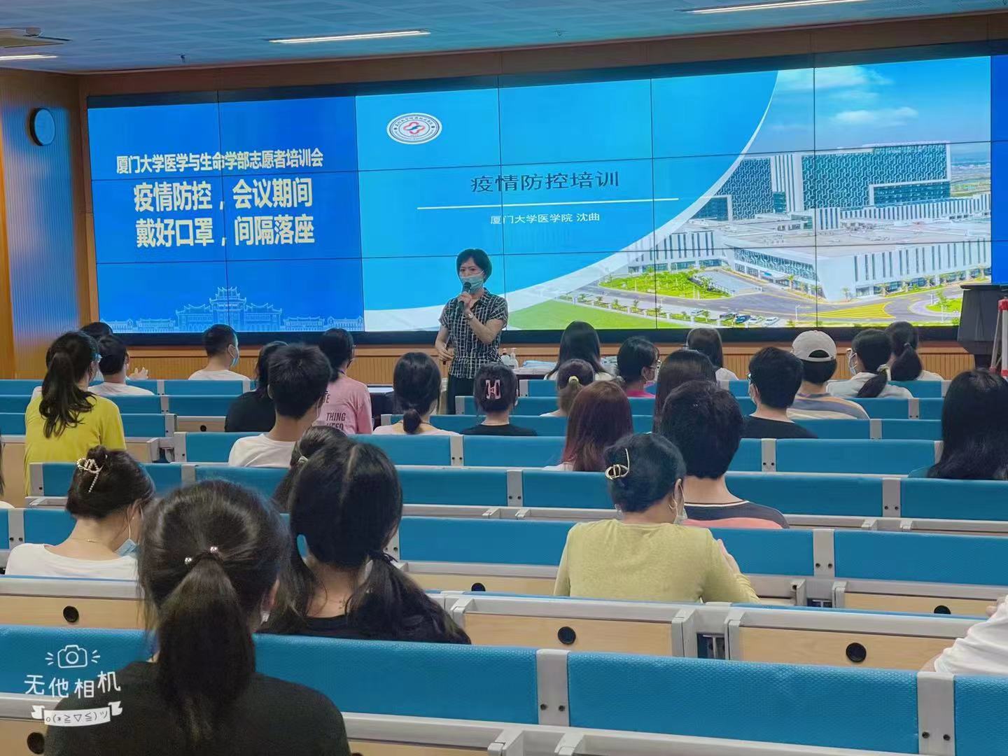 为协助厦门市全员核酸检测工作,医学院、公共卫生学院、生命科学学院、药学院积极响应厦门市卫健委和学校党委的号召,紧急召集上千名医学部师生,组建了“厦门大学医学与生命科学学部疫情防控志愿队”,于9月20日11点至21点在翔安校区五号楼A208会议室召开了六场志愿者培训会。医学院护理系教工党支部书记沈曲、党员刘洋应邀担任培训指导,介绍了防护用品穿拖、鼻咽拭子采集和口咽拭子采集的具体方法,用专业技术守护志愿者的安全与健康。