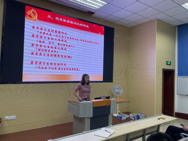 课后,三个党支部的党员学生深有感触,积极讨论。三位党员主动上台分享自己的体会认识。第一医院研究生第一党支部的潘梦婷从如何发挥好思想作风道出了自己的见解;第一医院研究生第二党支部李林涛结合平时在临床实习中的所见所闻分享了工作作风在临床中的重要性;第一医院研究生第三党支部书记何洪彰则从学习作风角度讲述了“理论联系实际”对医学生提高学习能力、掌握专业技能的重要意义。