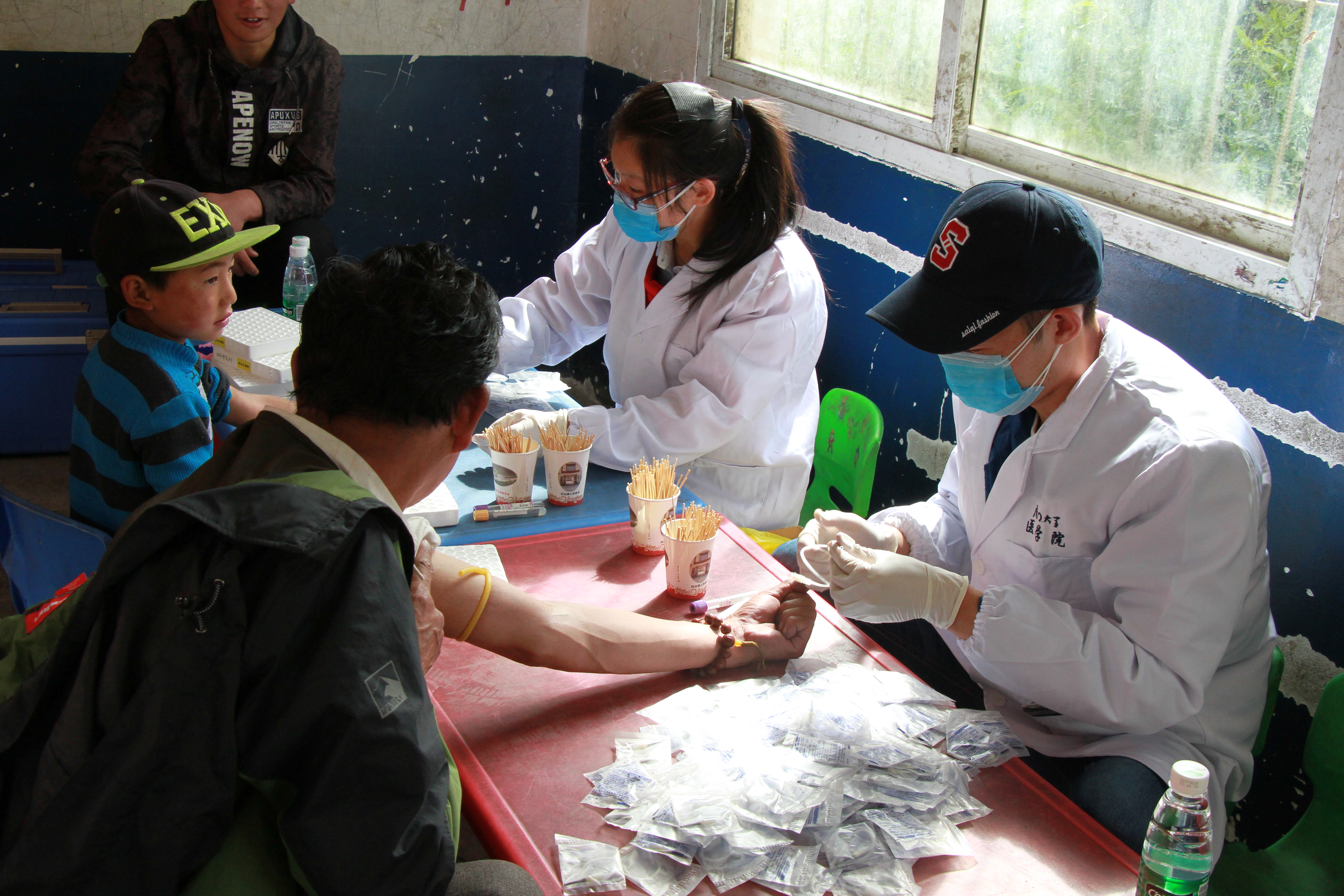 对左贡县49个行政村、约9千人进行了包虫病筛查,图为采集村民血样