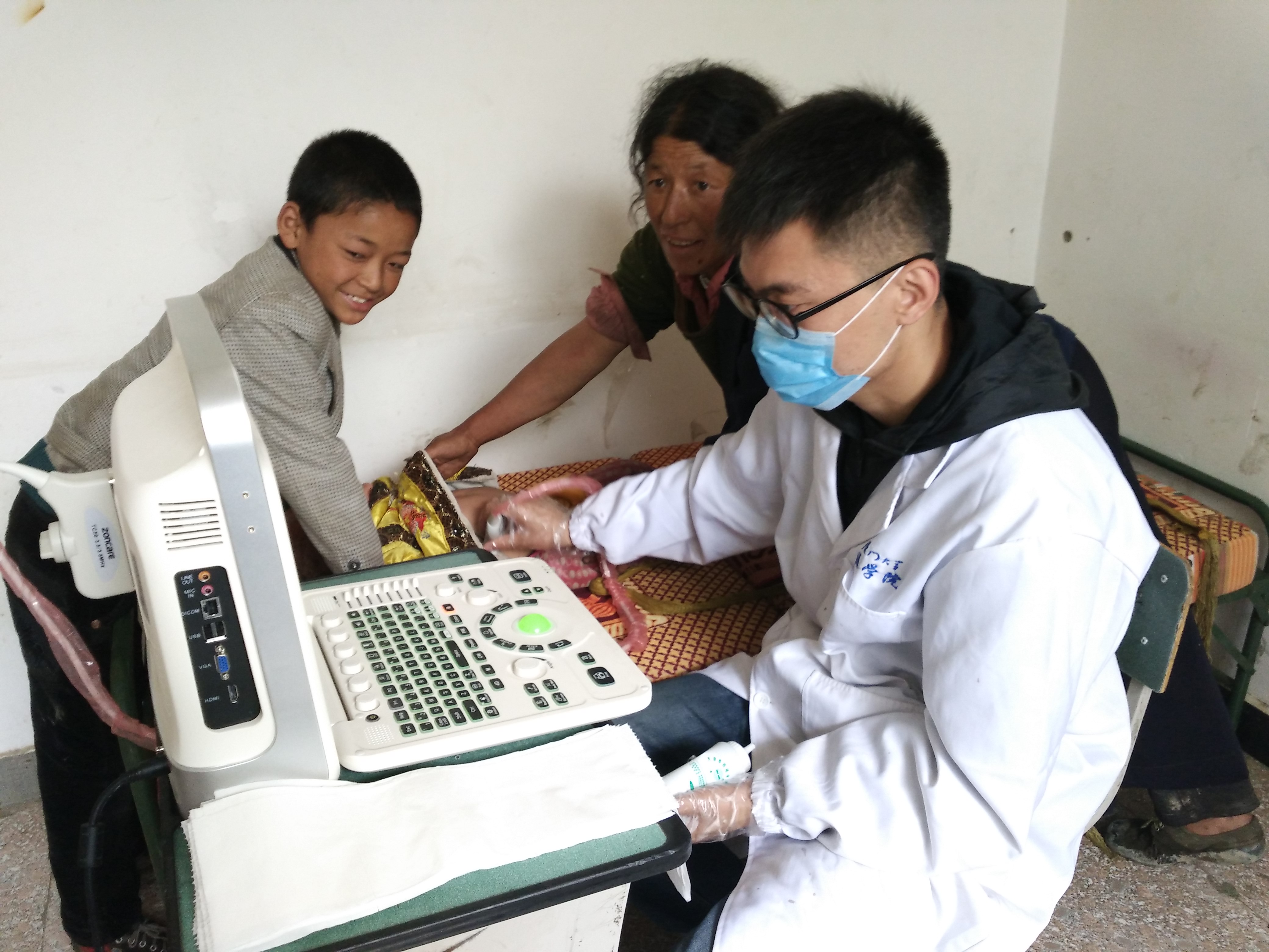 带便携式B超机下村,上门为西藏左贡县小朋友进行筛查