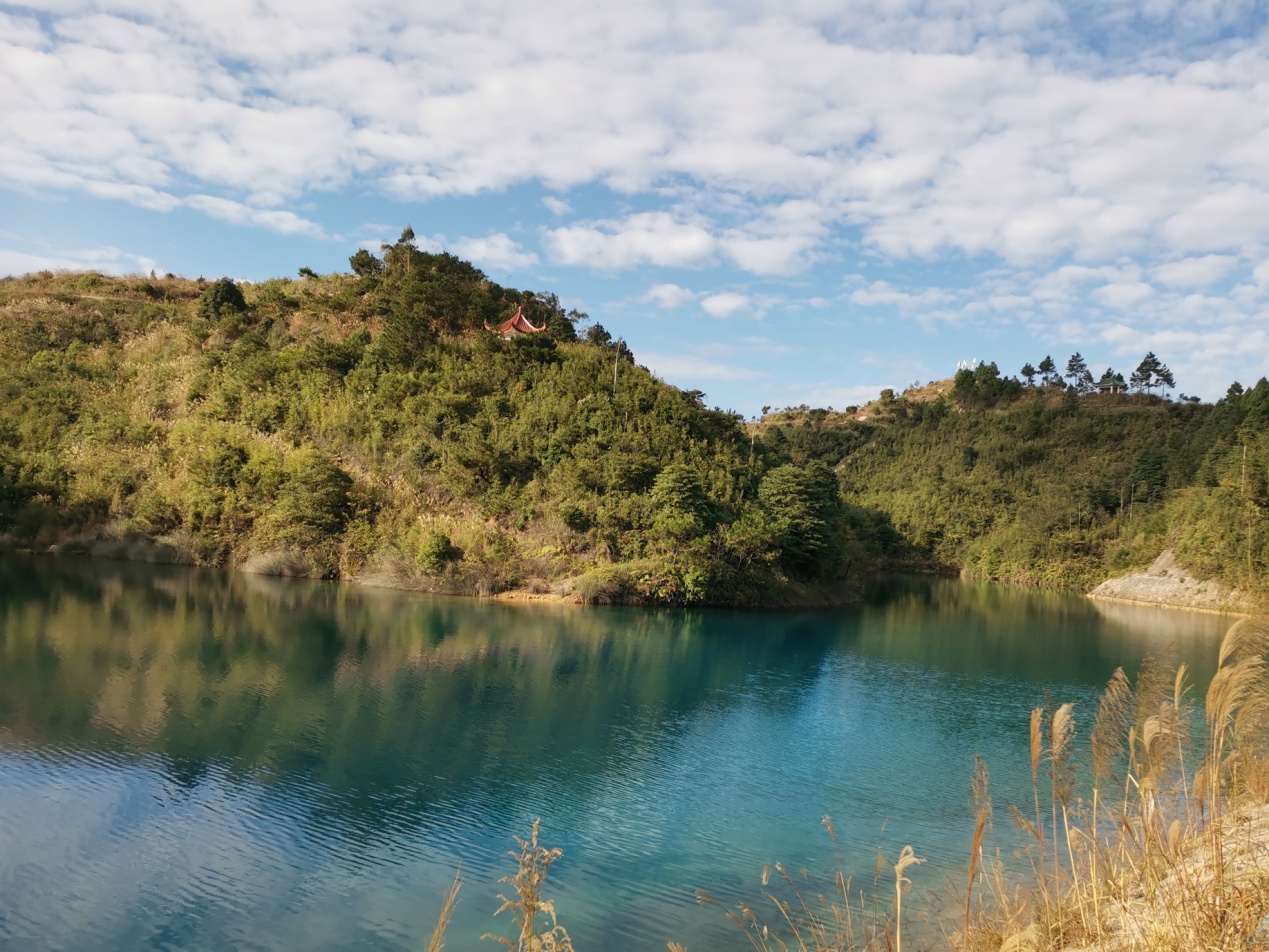 最后,大家来到了美丽的七彩池,这里池水碧波如镜,蓝绿色湖面在蓝天白云的衬托下格外清澈,犹如仙境。周围的青山和茶园,倒映池中犹如坠落的宝石,让人流连忘返。
