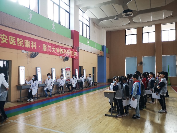 此次活动以“为了翔安小朋友的眼健康”为主题,对学校的1000多名小学生进行视力和眼屈光筛查。在学校老师和志愿者们的引导下,灯箱视力检测安静有序地进行,医务工作人员分班级对每位学生进行认真、细致的视力检测,并将检查结果及时填入视力筛查报告单,对于怀疑有屈光不正及眼部其它疾患的学生,除了视力筛查报告单,还会填写一张视力筛查家长通知单,以便让家长及时带孩子前往医院进一步检查。