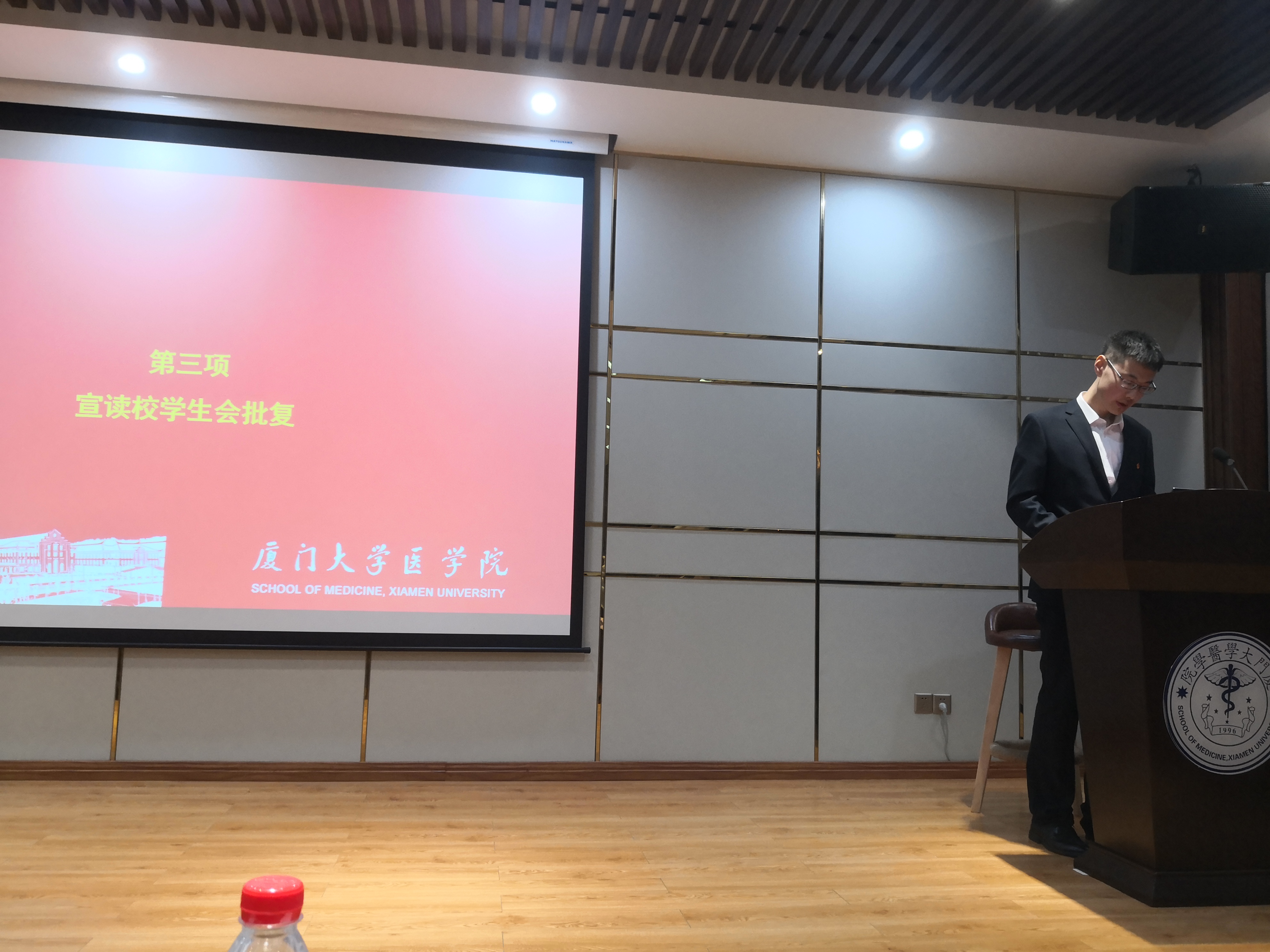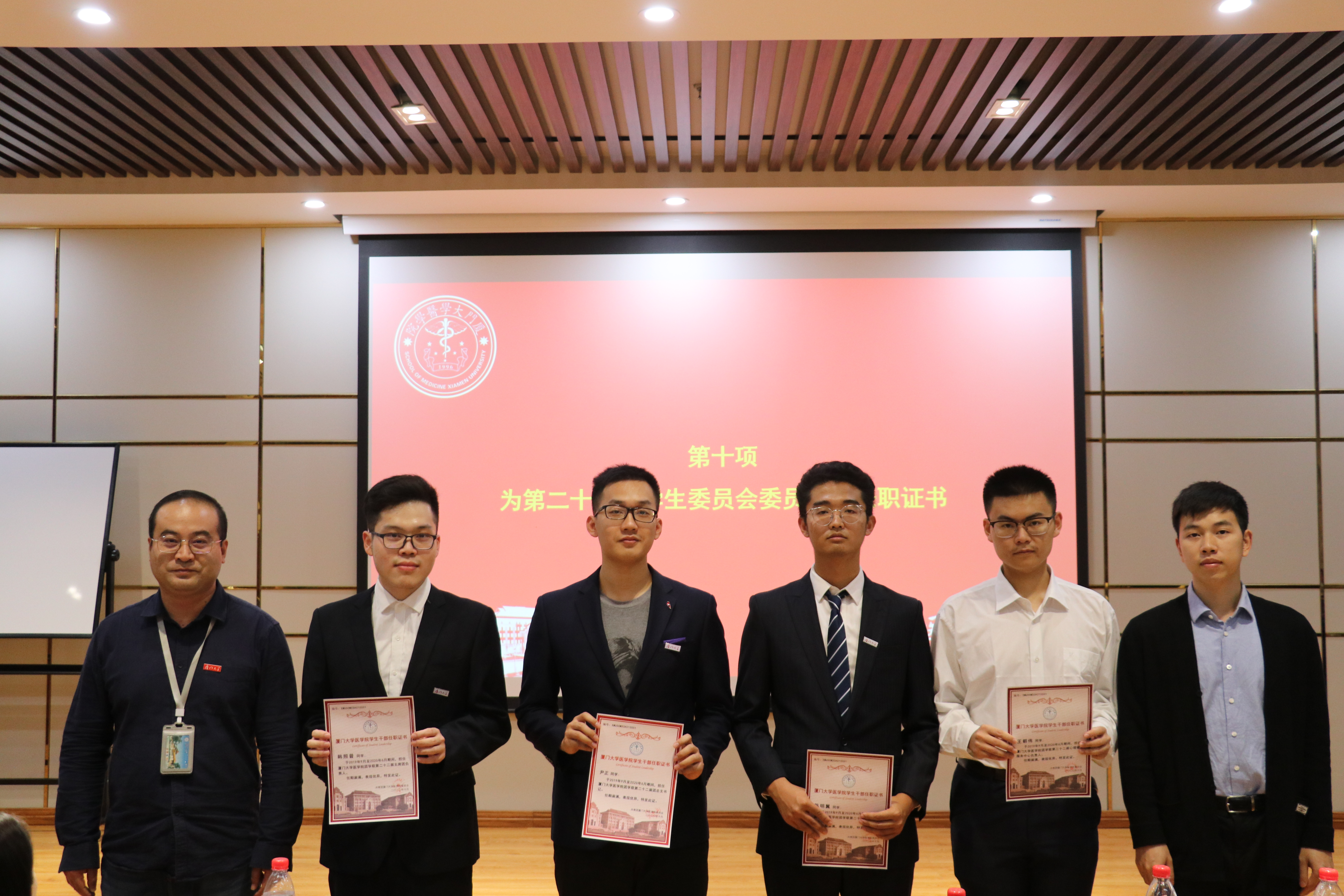 全体代表审议并通过了院第二十二届学生会主席团成员陈明翼所作医学院第二十二届学生委员会工作报告,大会通过无记名投票方式选举产生新一届学生会和团总支主席团,并为2019-2020学年院优秀学生干部颁奖,为院第二十二届学生会成员颁发任职证书。