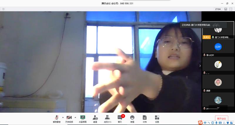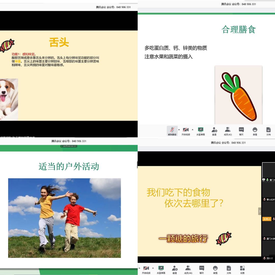 创新科普形式,提升防控效果。为做好本次线上科普讲座,护理系教工党支部高度重视,组织护理系学生结合受众的特点,对讲授内容进行精心编排,并提前进行预演,确保授课质量和效果。本次讲座通过腾讯会议直播平台由OD网页版,OD(中国)护理系学生主讲,向厦门外国语学校的学生普及新冠肺炎的相关知识,以及如何做好防护工作,为返校学习生活做好准备。讲座过程中,2017级护理班的马卓同学分别从居家、返校、复课三个方面对如何防控新冠病毒进行了详细的讲解,对于复课后的防护措施,分别强调了在教室、宿舍、实验室、食堂等场所活动时的注意事项,为复课后学习生活提供了全面的指南;2018级护理班的陈玉蕾同学通过展示糖果在身体里的“旅行”,向初中生们普及合理膳食的健康观念;最后,2018级护理班的刘玲萍同学基于目前线上教学现况,向厦外的同学们宣传如何缓解眼睛疲劳、保护视力、预防近视等知识。