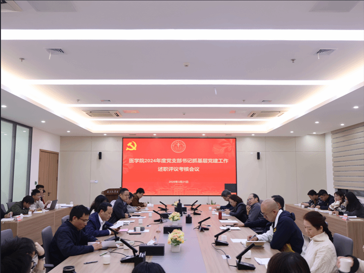为进一步压紧压实基层党支部书记抓基层党建第一责任人职责,推进全面从严治党向基层延伸,推动党建与事业发展深度融合,3月21日下午,医学院党委召开2024年度党支部书记抓基层党建工作述职评议考核会。学院党委委员、师生党支部书记、组织员及部分支委代表参加会议。