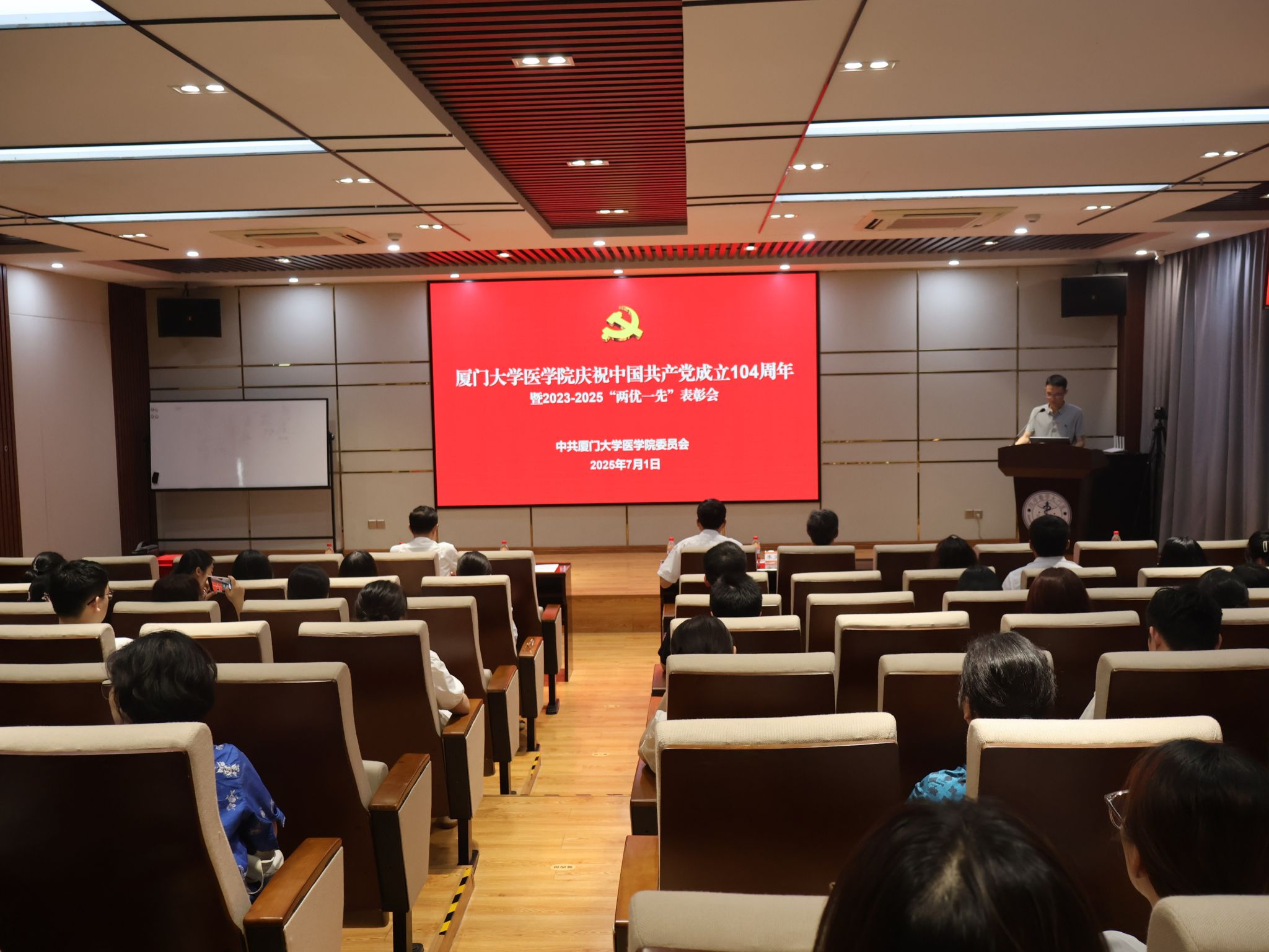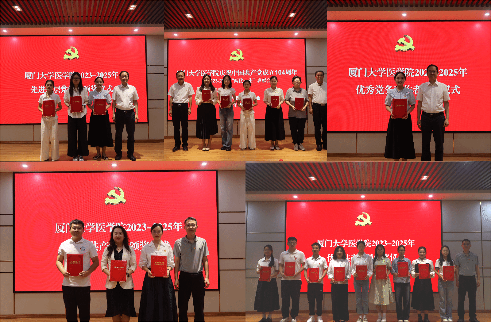 王坤钟宣读了《医学院党委关于表彰 2023-2025 年优秀共产党员、优秀党务工作者和先进基层党组织的决定》,黄彩虹等 21人获“优秀共产党员”称号,冉丽莎获“优秀党务工作者”称号,中医系研究生党支部等3个党支部获“先进基层党组织”称号。同时,在6月30日下午举行的学校表彰会上,医学院党委获评“厦门大学先进基层党组织”,冷历歌老师、杨盛澜老师、曾靖宇同学、陈茹晴同学获评“厦门大学优秀共产党员”,易佩荣老师获评“厦门大学优秀党务工作者”并作为代表发言。