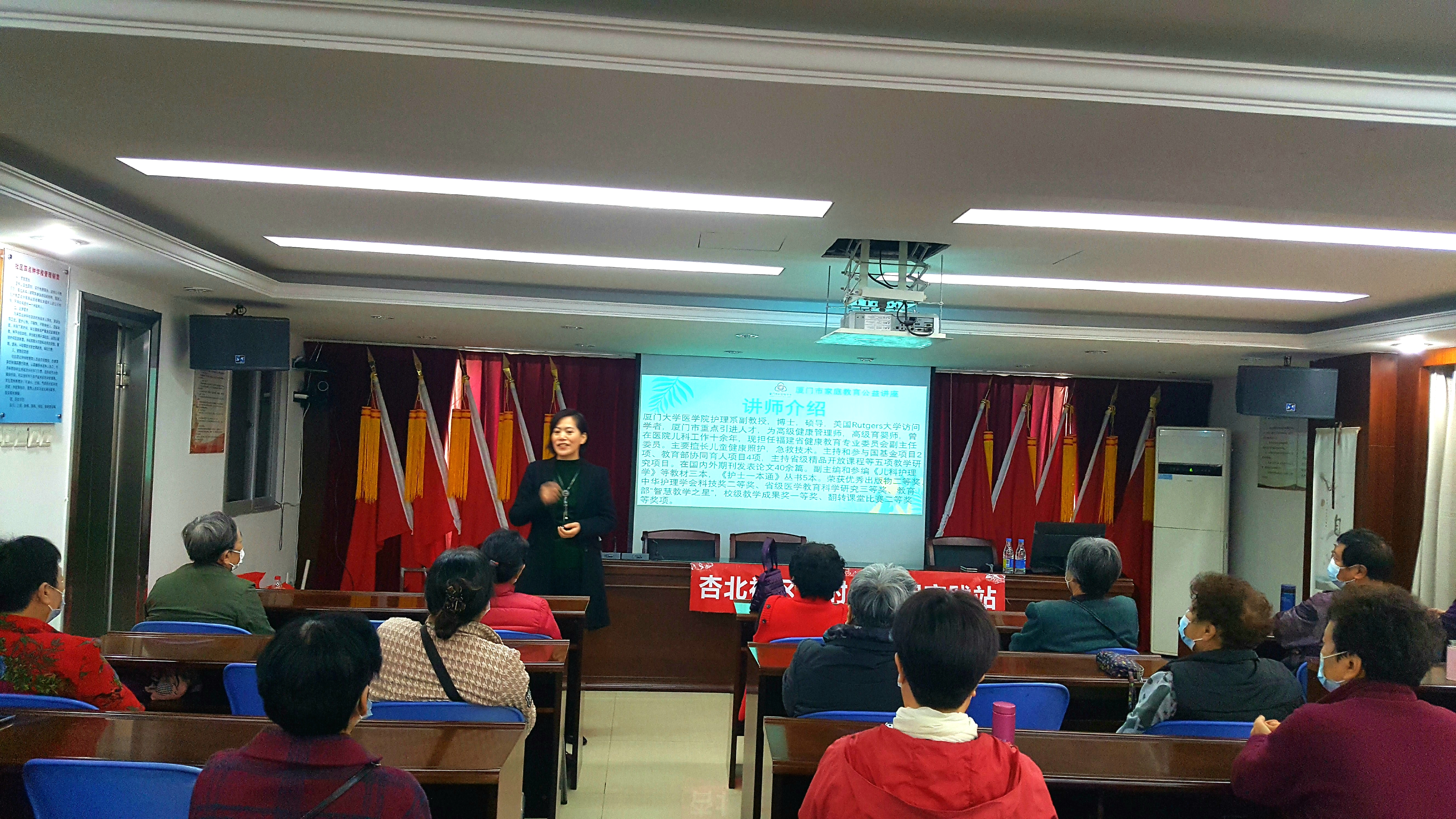 健康是儿童成长的重要基础,为了更好地推广家庭科学健康理念,2022年1月25日上午九点,由厦门市妇女联合会、厦门市教育局、中共厦门市委文明办、厦门市民政局、厦门市文化和旅游局、厦门市卫生健康委员会、厦门市科学技术协会、厦门市关心下一代工作委员会主办,护理系教工党支部协办的主题为“儿童常见疾病防治”的家庭教育公益讲座在集美杏林杏北社区举办,护理系教工党支部书记沈曲副教授主讲,社区居民三十余人参加了讲座。