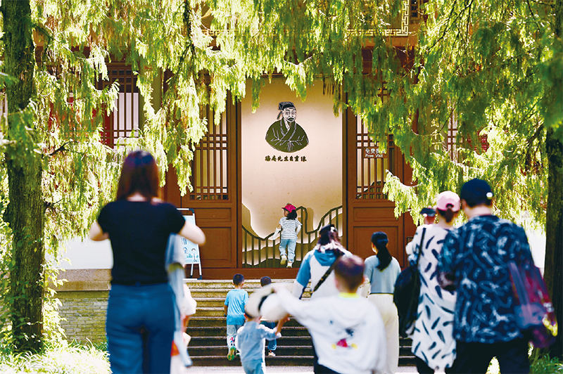 2021年3月,习近平总书记在福建考察期间专程来到武夷山朱熹园,了解朱熹生平及理学研究等情况,指出要特别重视挖掘中华五千年文明中的精华,把弘扬优秀传统文化同马克思主义立场观点方法结合起来,坚定不移走中国特色社会主义道路。图为游客参观位于福建武夷山朱熹园的武夷精舍(2022年6月6日摄)。