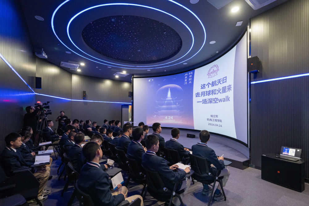 学生在哈尔滨工业大学航天馆内听中国航天日主题讲座(2024年4月24日摄)。