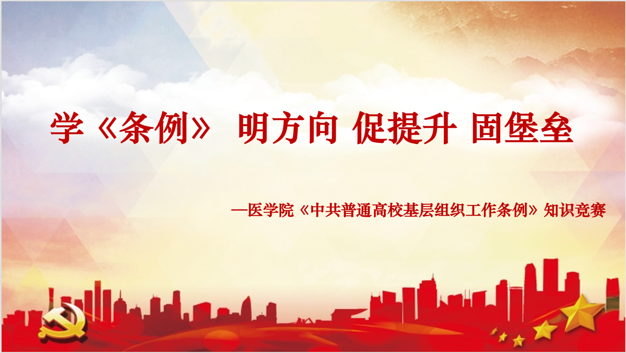 为切实加强基层党组织建设,创新理论学习形式,医学院中山医院研究生第一党支部和中低年级本科生党支部于5月28日联合开展“学《条例》 明方向 促提升 固堡垒”主题知识竞赛活动。此次竞赛以新发布的《中国共产党普通高等学校基层组织工作条例》(以下简称《条例》)为重点,旨在通过赛前学习和竞赛检验,进一步巩固《条例》学习成果,为持续深入开展党史学习教育增添动力。