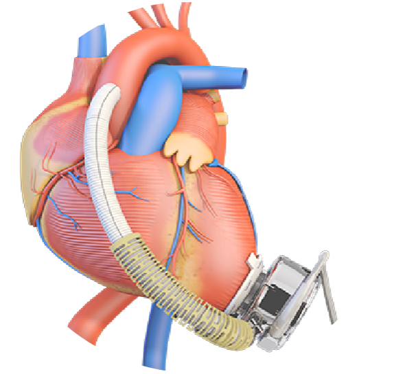 “患者自身的心脏仍然保留在体内,只是心脏心尖位置多了一个高尔夫球大小的人工心脏装置。”吴锡阶解释道,这个人工心脏有一个带有叶轮的泵,通电后叶轮会悬浮起来,在与四周没有接触的情况下高速旋转,并通过一根粗粗的人造血管将血液送向全身,协助心脏完成“泵”的功能,从而维持血液循环。