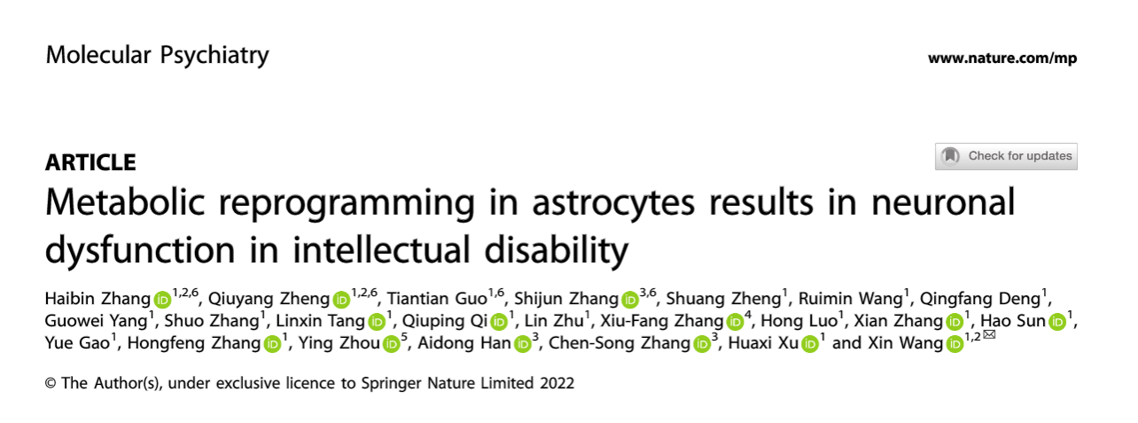近日,OD网页版,OD(中国)神经科学研究所王鑫教授团队在Nature出版社旗下国际神经科学领域著名期刊Molecular Psychiatry杂志(IF 15.9)发表题为“Metabolic reprogramming in astrocytes results in neuronal dysfunction in intellectual disability”的研究成果,发现智力障碍相关基因SNX27突变可通过诱导星形胶质细胞代谢重编程而损伤认知功能,并提出通过生酮饮食恢复星形胶质细胞能量代谢可以减轻认知损伤。