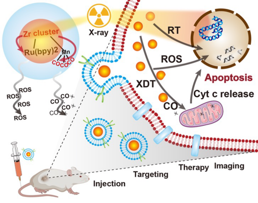 放疗是治疗实体瘤最有效的局部深层治疗方式之一,主要通过直接高能电离辐射和间接的辐射水解产生的活性氧(ROS)破坏细胞DNA。但是,由于缺乏精确靶向性和放射敏感性,其临床应用受到一定限制;此外,ROS寿命短和作用半径小,使治疗效果也大打折扣。因此,改善放疗靶向性和放射敏感性,是临床放疗领域的关键难题和研究热点。