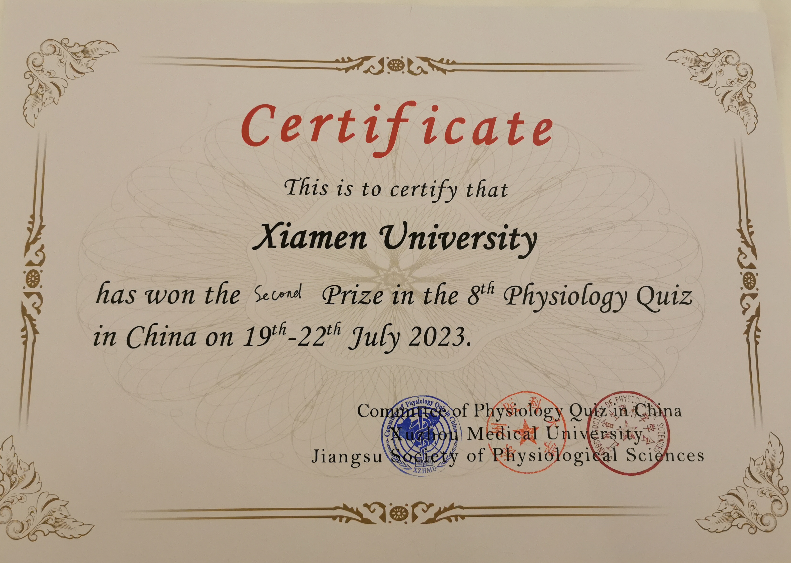 随着教育国际化进程的加速,培养具有国际化视野、与时俱进的高素质医学专业人才是研究型医学院的首要任务,也是加强双一流学科建设具体内容。生理学是医学专业的主干基础课程,也是医学各相关专业的必修课程。为提高生理学教学水平,近年来,在学院的大力支持下,生理学课程组在多次组队参加生理学知识竞赛的基础上,提出基于“赛教融合”的课程教学改革实践。自2017年起,课程组建立线上英文生理学学习群,对自愿参与的学生发放学习资料,指导学生自主学习,并通过组织厦门大学生理学(专业英语)知识竞赛,激发学生的学习兴趣,选拔优秀学生参加国赛和国际赛。以赛促学,以赛促教,赛教融合,使竞赛与教学相互协调发展。