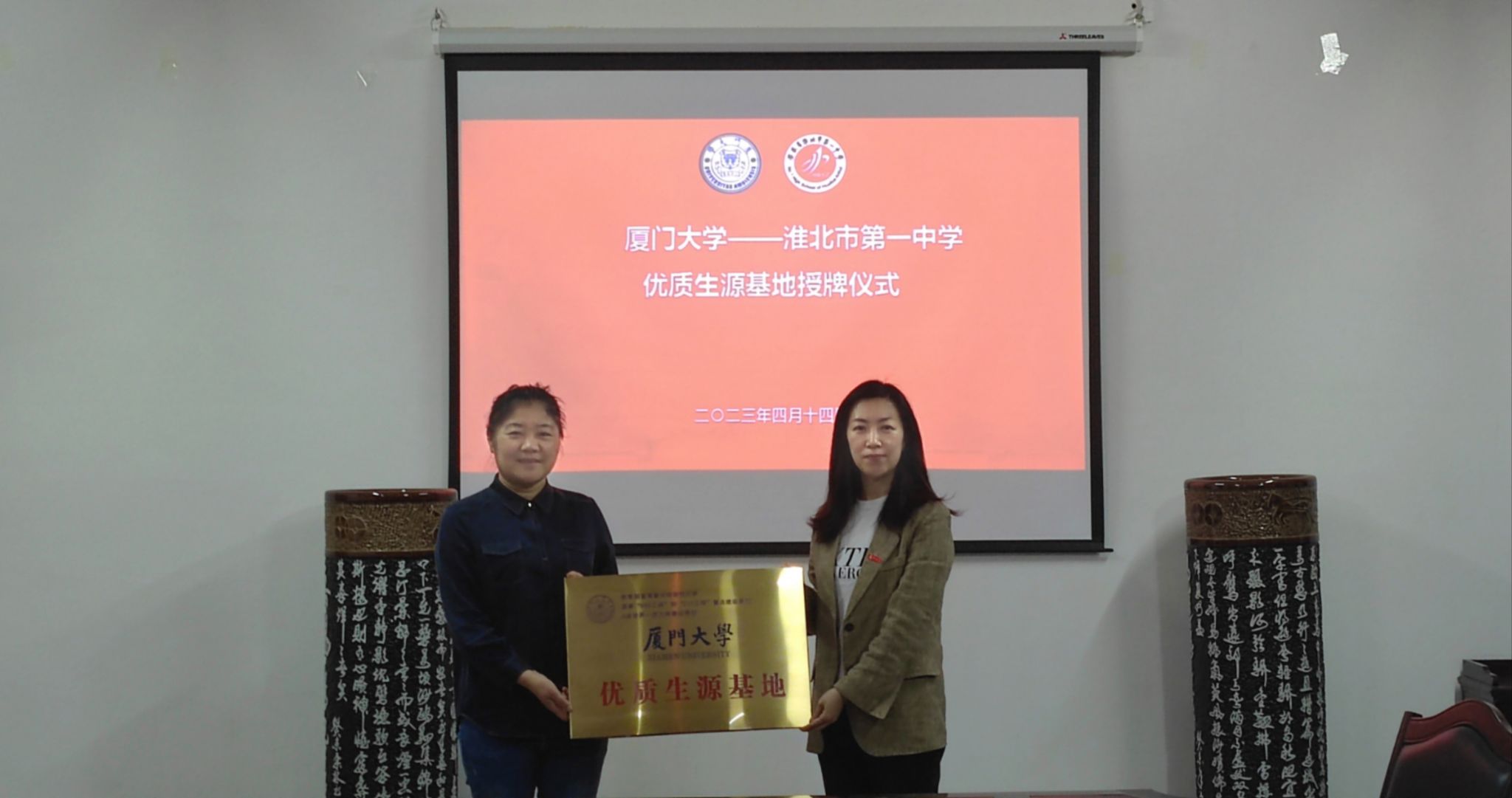 为进一步提高我校在安徽省的生源质量,4月12日至15日,厦门大学安徽招生宣传组赴安徽省滁州市、淮北市开展招生宣传活动。此次安徽招生宣传组由医学院党委副书记辛晓丹老师带队,吴亚林教授、团委许洋老师、教务办朱雅洁老师三人随行,分别为安徽省天长中学、定远中学、淮北市第一中学三所安徽省示范高中进行“优质生源基地”授牌仪式、“教授进中学”讲座及招生宣讲。天长中学张兆红校长、定远中学戴茂俊校长、淮北市第一中学马颖校长分别带领所在中学教师代表,与我校招生宣传组开展座谈会,并接受“厦门大学优质生源基地”授牌。
