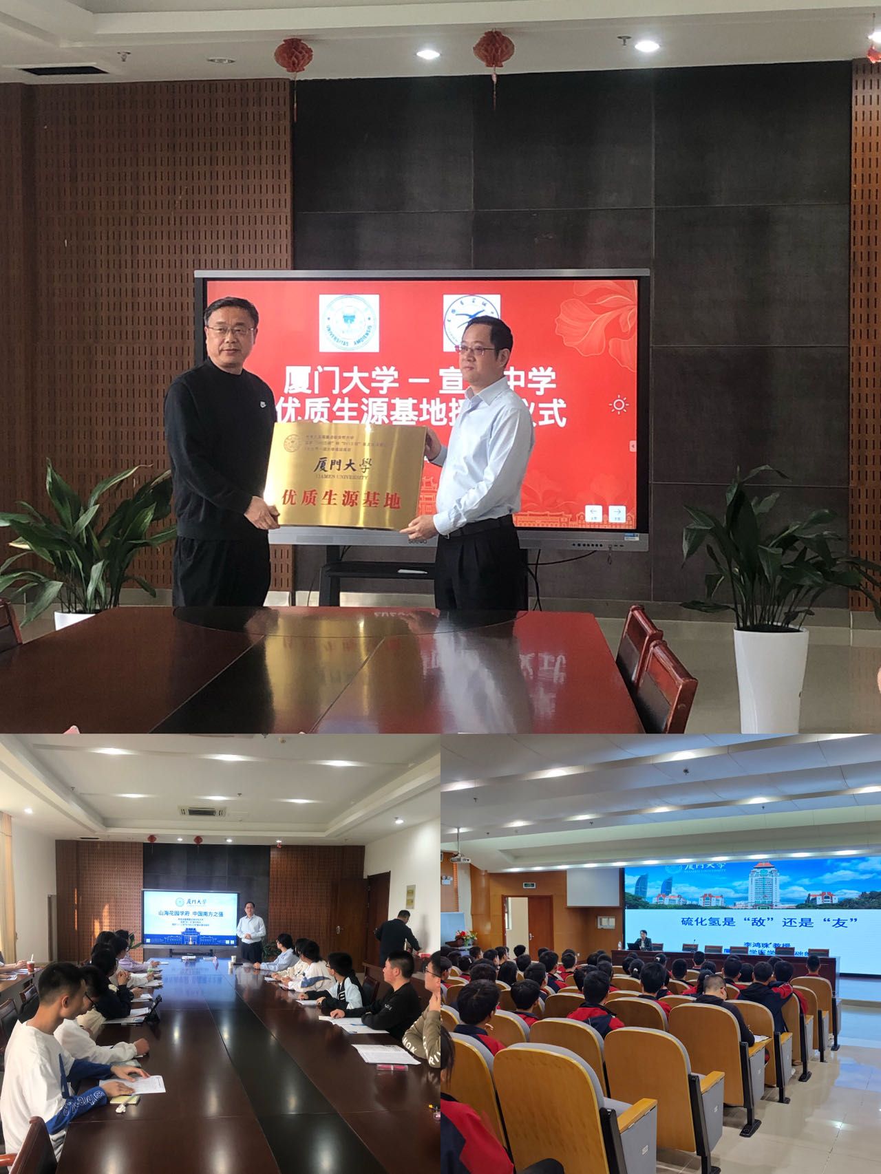 李鸿珠教授以“硫化氢是‘敌’还是‘友’”为题,分别在宣城中学和宁国中学开展科普讲座,与到场同学们共同探索硫化氢的生物毒性和医药用途。李教授讲课幽默风趣,内容深入浅出、妙趣横生,讲座现场笑声连连、掌声不断,同学们心中埋下了科学探索的种子和对厦门大学的向往。