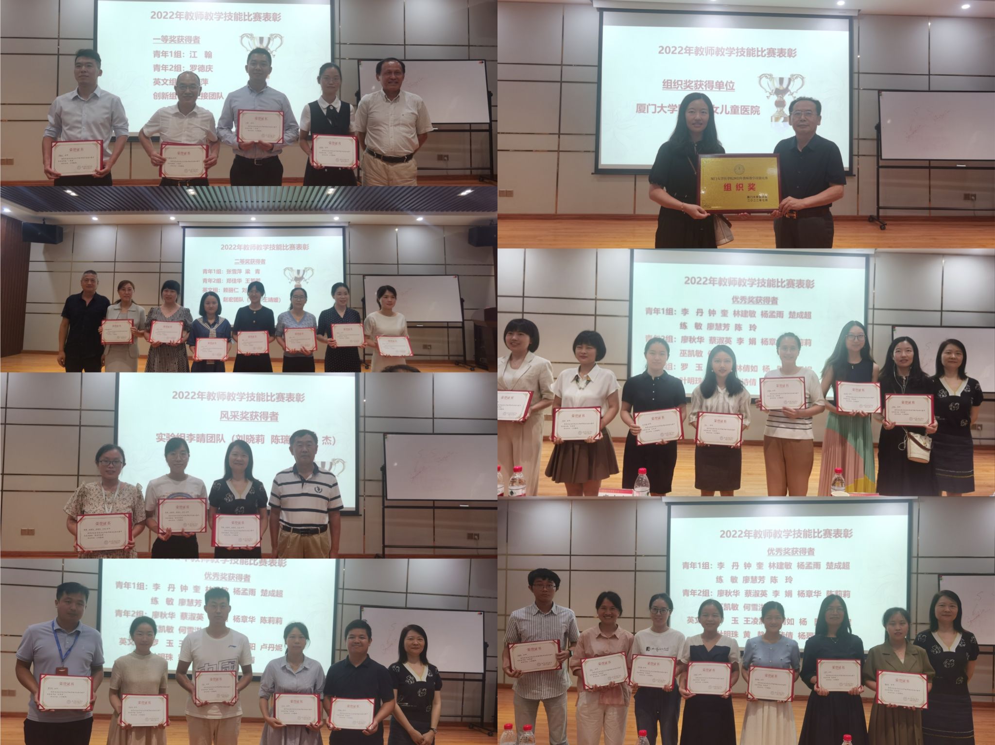 各参赛教师围绕参赛内容,用心编写教案,认真制作多媒体课件,热情洋溢、深入浅出的讲解,充分展示了各具特色的课堂教学风采。参赛教师们积极备战的态度、认真专业的表现、全面扎实的基本功受到评委和观摩老师们的一致好评。经过激烈角逐,附属第一医院江翰、附属东南医院罗德庆获得学院青年教师教学比赛一等奖,附属中山医院游萍萍获得学院英语教学比赛一等奖。此外,附属妇女儿童医院林育敏、附属东南医院王芳芳、附属第一医院刘琦获得最佳课件奖,附属第一医院周颖、附属中山医院廖秋华、附属翔安医院杨阳获得最佳教案奖;附属第一医院黄正接团队摘得教学创新比赛桂冠,李晴老师实验课程团队获得风采奖;附属妇女儿童医院获得组织奖。