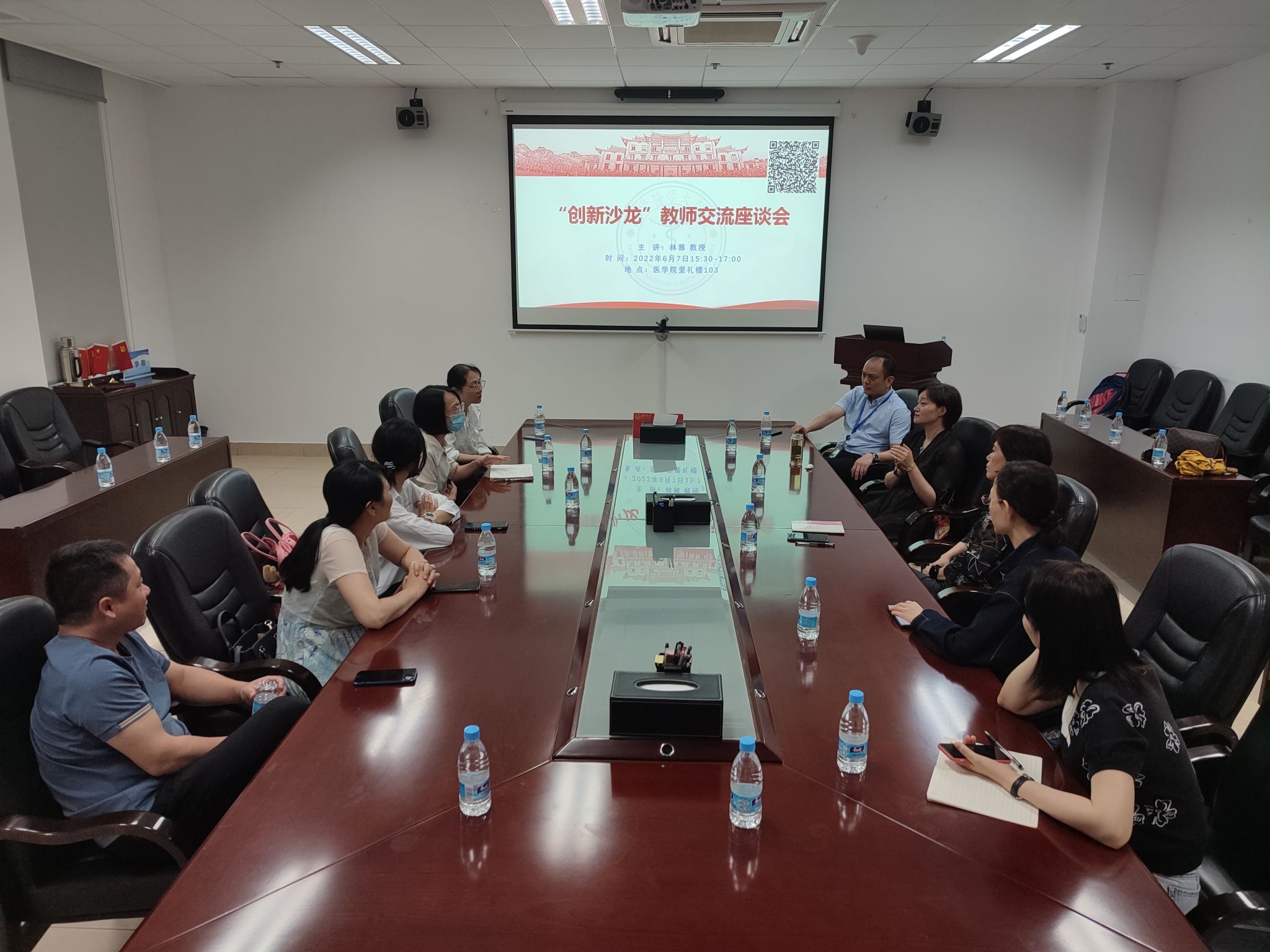 讲座结束后,各个课程的负责人或学科带头人继续参加了创新教学主题的座谈会,针对“如何提高同学们课堂教学的参与度?”、“如何将翻转课堂应用得恰到好处”、“教研室如何更高效地集体备课”等常见问题与林雅教授展开热烈的交流与讨论。