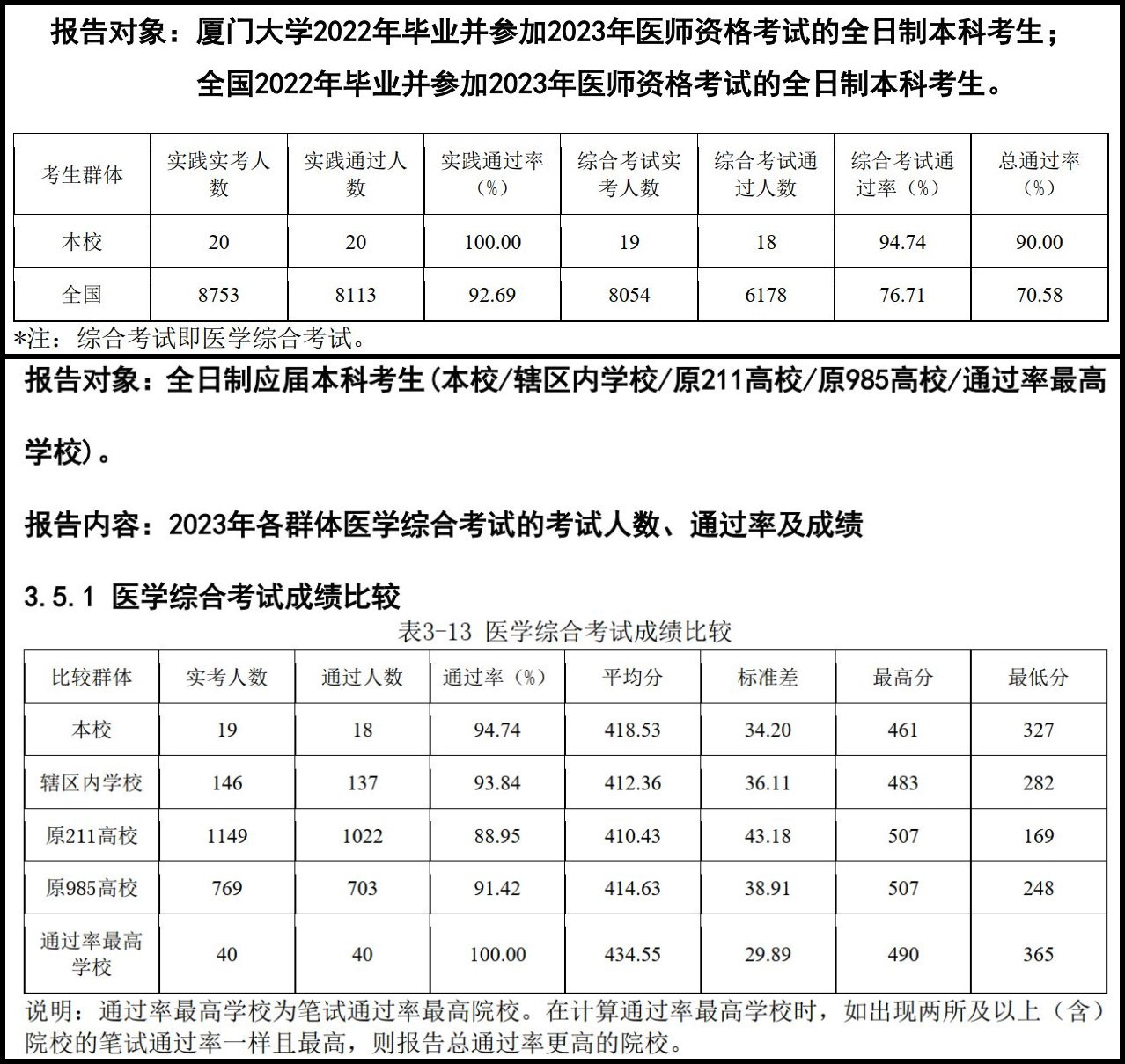 数据来源:2023年医师资格考试成绩分析报告(厦门大学,口腔执业医师)