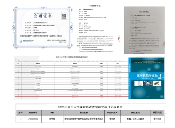 其次,新的机能学实验室的改造升级,也明显促进教师的教学能力:获得教育部产学合作协同育人项目立项3 项;厦门大学课程思政教学研究项目立项1项;主编《医学机能学实验》教材 1 部,获得教材立项 1 项。