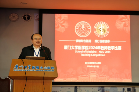 4月11日,由厦门大学医学教师发展与医学高等教育研究中心及医学院工会联合主办、厦门大学附属中山医院承办的OD网页版,OD(中国)2024年教师教学比赛圆满落下帷幕。本次比赛分为青年组、英语组、创新组、实验组四个赛道,由学院及9家附属医院选拔出来的54名教师及3个教学团队参加了比赛。比赛由附属中山医院教学部主任洪帆主持,教育部实验室建设与实验教学指导委员会委员施芝元、医学院副院长薛茂强、附属中山医院副院长田新华、医学院工会主席卓仁恭受邀出席比赛。比赛评委团由施芝元、李鸿珠、高丰光、李善花、陈少东、李晴、马永慧等在教坛耕耘多年的资深教师及3位学生评委组成。田新华在赛前进行致辞中指出在新医科建设大潮的推动下,全国的医科教育正发生着巨大的变化。感谢学院给予附属中山医院承办大赛的机会。医科师资建设是人才培养的重要环节,希望通过本次比赛,参赛老师们能够加强交流,相互学习,进一步推动教学的技能提升与内涵建设。薛茂强对附属中山医院能够承办本次比赛表示感谢。他讲到,近几年学院在人才培养方面成效显著,这一成绩有赖于老师们的辛勤付出和努力。教学水平提升需要长期磨练,希望老师们能够不断精进教学技能,为人才培养做出更大贡献。