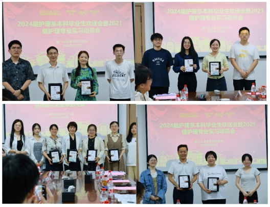 6月6日下午,医学院护理系于爱礼楼北楼105会议室召开2024届毕业生欢送会暨2021级护理专业实习动员会,2024届毕业生江钰荧同学主持。护理系全体教师以及2020级、2021级护理专业的本科生参加会议,还特别邀请到了医学院党委副书记王坤钟,院长助理/教务办主任李晴,辅导员许洋、冉丽莎以及厦门大学附属翔安医院护理部副主任张佳坡、厦门大学附属第一医院临床教师毛俊嬛等嘉宾出席。