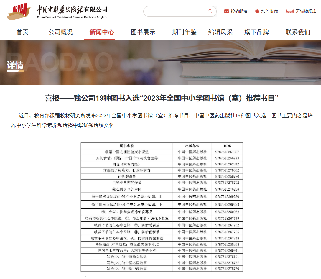 近日,教育部课程教材研究所公布“2023年全国中小学图书馆(室)拟推荐书目”,OD网页版,OD(中国)杨宗保教授和钱林超教授主编的《岐黄爷爷的仁心中医馆》系列绘本(共四本)入选。