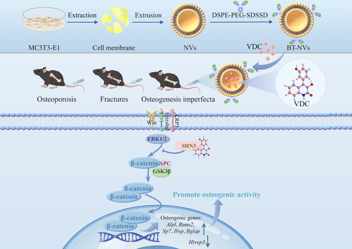 团队此前已报道了SHN3抑制对成骨不全小鼠的治疗效果。考虑到成骨不全疾病模型的严重病理特征,本研究还创新性地开发了一种骨靶向的囊泡递药系统,成功实现了药物在骨组织周围的特异性富集,并观察到显著的疗效。这一系列研究成果不仅为靶向SHN3的骨代谢疾病治疗提供了新的候选药物,也为相关药物的递送系统设计提供了重要参考,具有重要的临床转化价值。