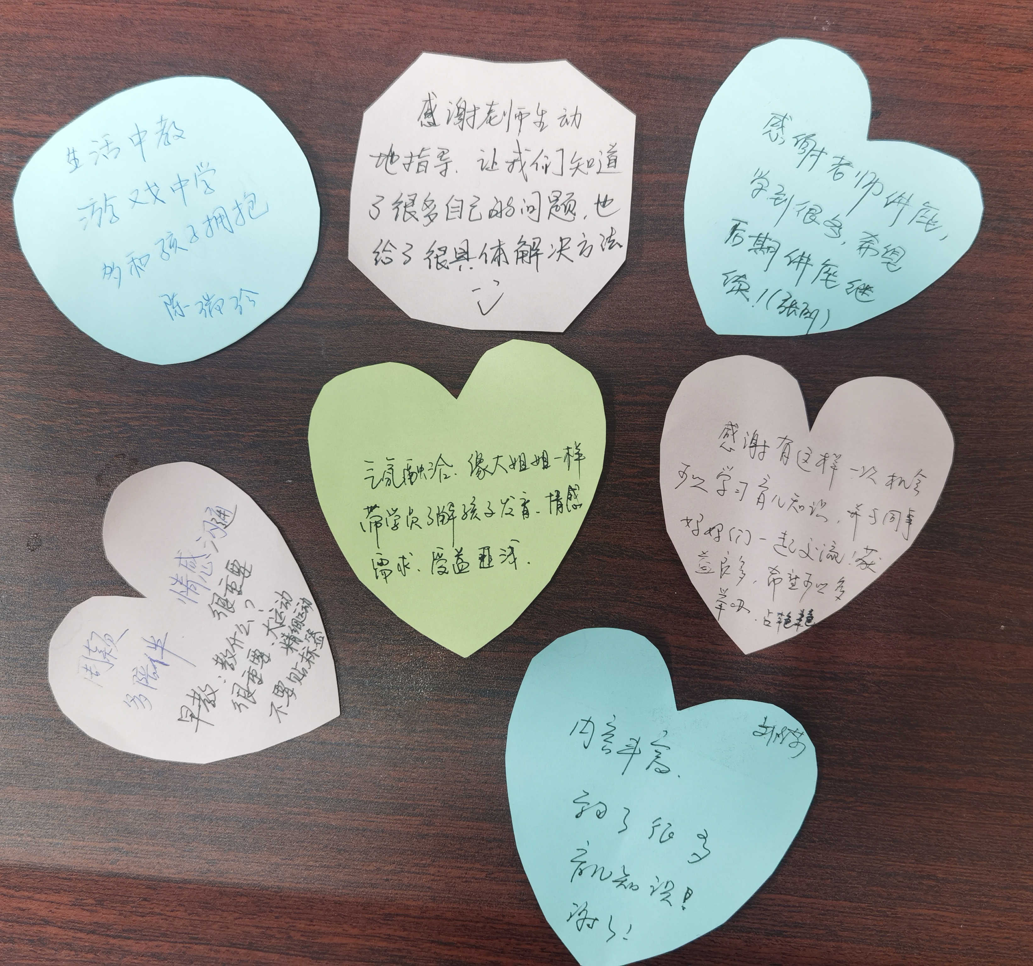 讲座开始前钟老师与各位老师进行了亲密的互动和沟通,与大家一起做游戏活跃气氛,在游戏中拉近和彼此之间的距离,有欢笑声,更有热烈的掌声。在轻松的氛围中,钟老师收集了在场老师们生活中关于育儿的实际问题并一一解答,问题涵盖亲子教育、儿童行为引导、儿童交友、二胎家庭等多方面。通过理论结合实际,钟老师分析了幼儿常见的心理状态及其成因,帮助大家更全面地了解到学龄前儿童的心理发展特征。老师们也将自己在育儿方面的困惑向钟老师分享,钟老师也给予大家详细的回答与建议。钟老师强调,通过日常与孩子拥抱传达爱,并教会大家正确的拥抱方式;同时还需要理解和接纳孩子成长过程中的变化,始终要用爱来呵护孩子的成长,并适时的调整自己的角色和心态。我们父母唯有以“不变应万变”,方能有所改善,与孩子们共同成长。