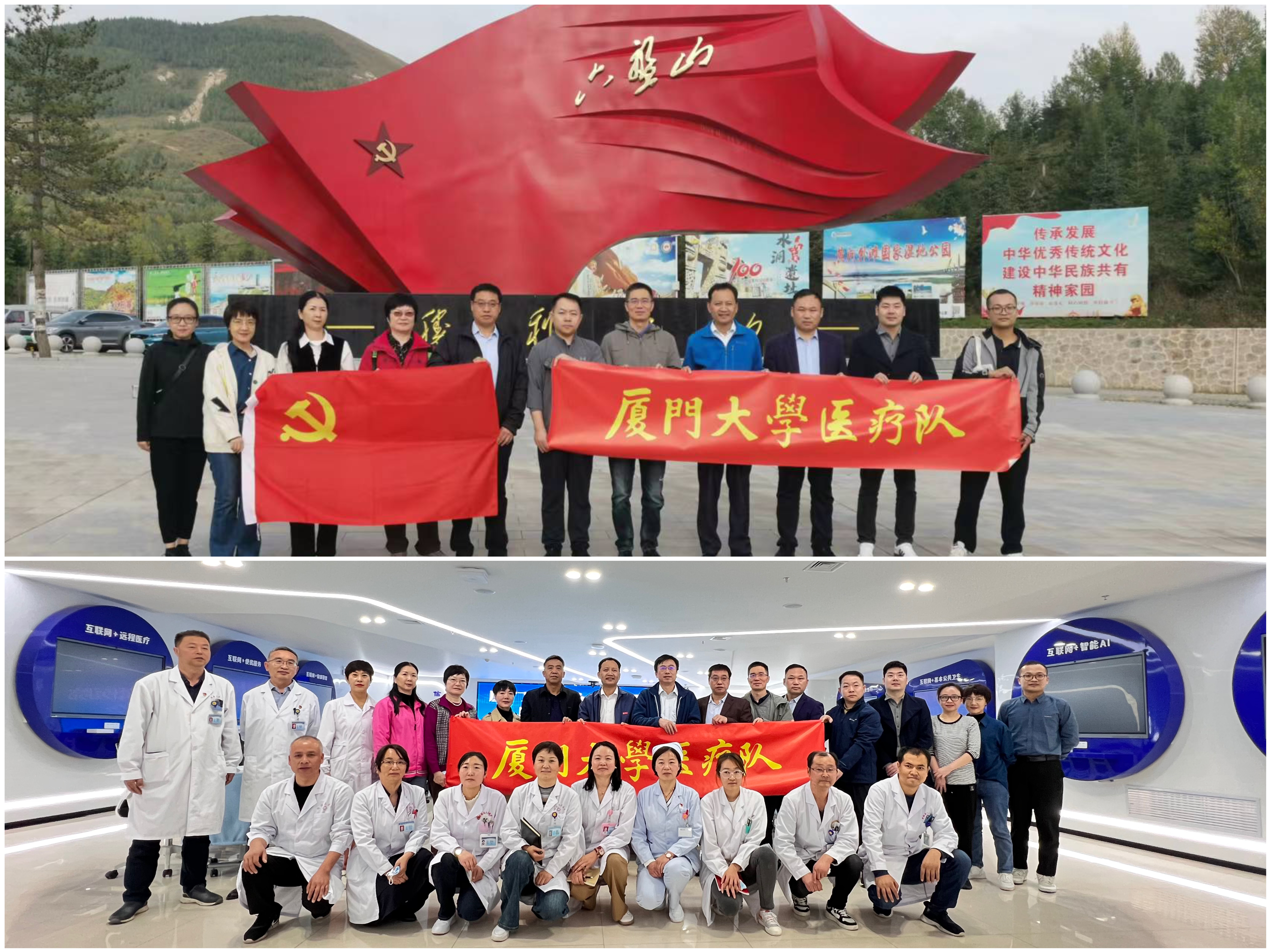 在隆期间,医疗队还来到六盘山红军长征纪念馆参观学习,看望了在县村挂职的陈国渊、戴立欣同志和在隆德四中的第25届研究生支教队的同学们,深切感受厦大师生奋斗在乡村振兴一线的青春故事,现场体会“清平乐·六盘山”的壮丽诗篇。