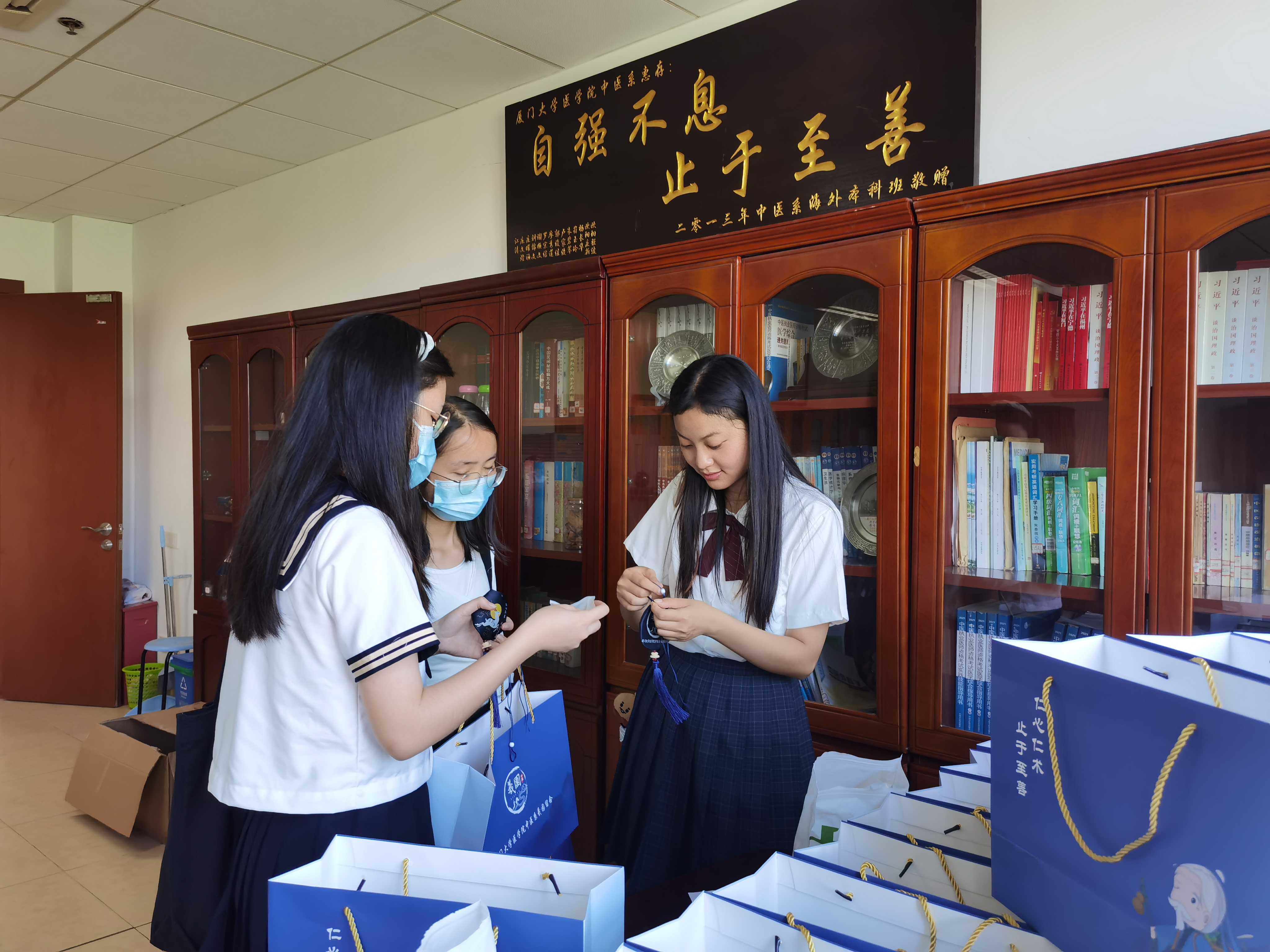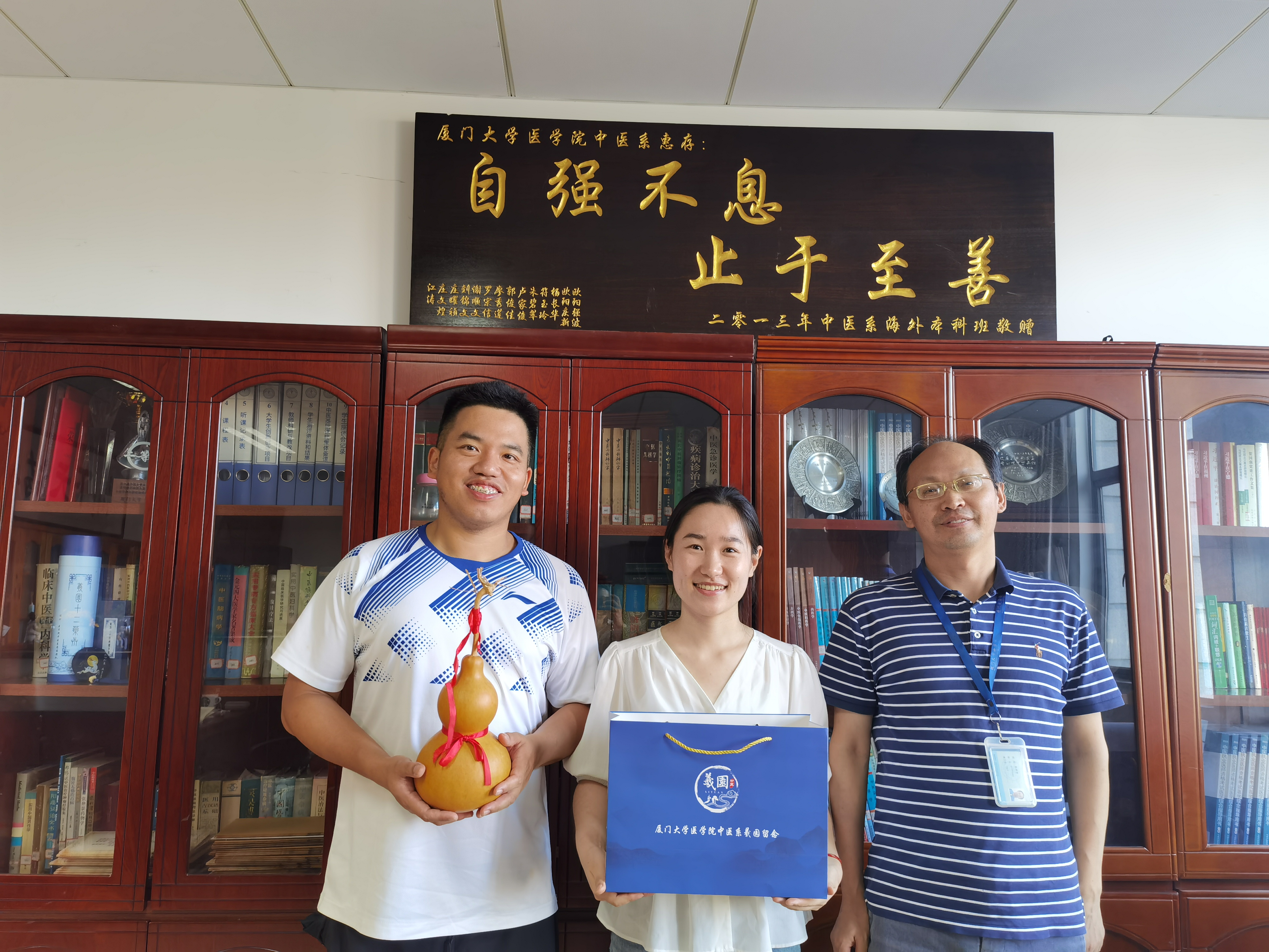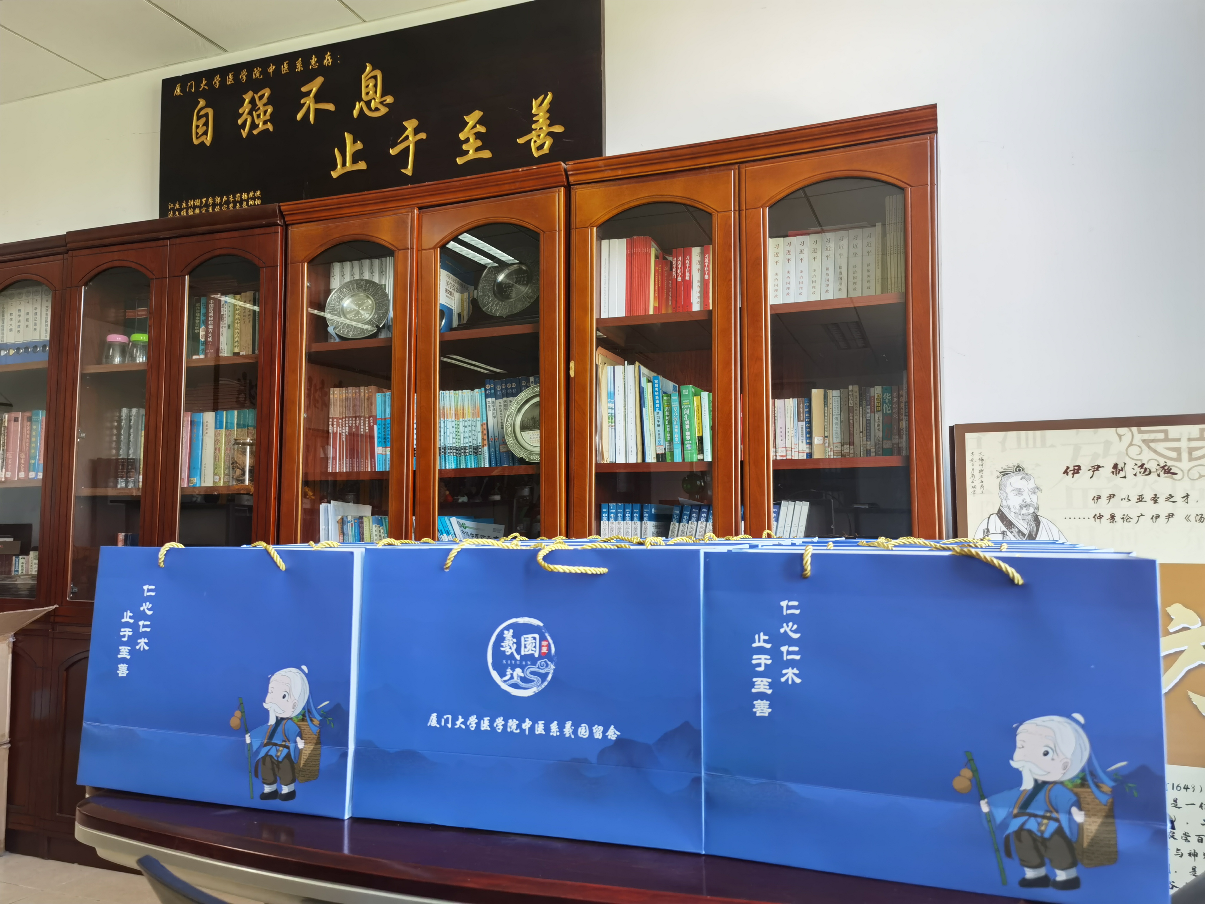 中医系全体教师深入学习贯彻党的二十大精神,坚守教育初心,积极弘扬和传播中医药文化,落实医学院打造“仁心思政”品牌的精神,精心指导毕业礼物的设计制作,将中华优秀传统文化、中医药文化与立德树人相结合,探索具有自身特色的中医学人才医德培养方式,以此希望毕业生们不忘母校教育之恩,时刻铭记“仁心仁术 止于至善”的医学院院训,努力为医学事业贡献自己的力量。