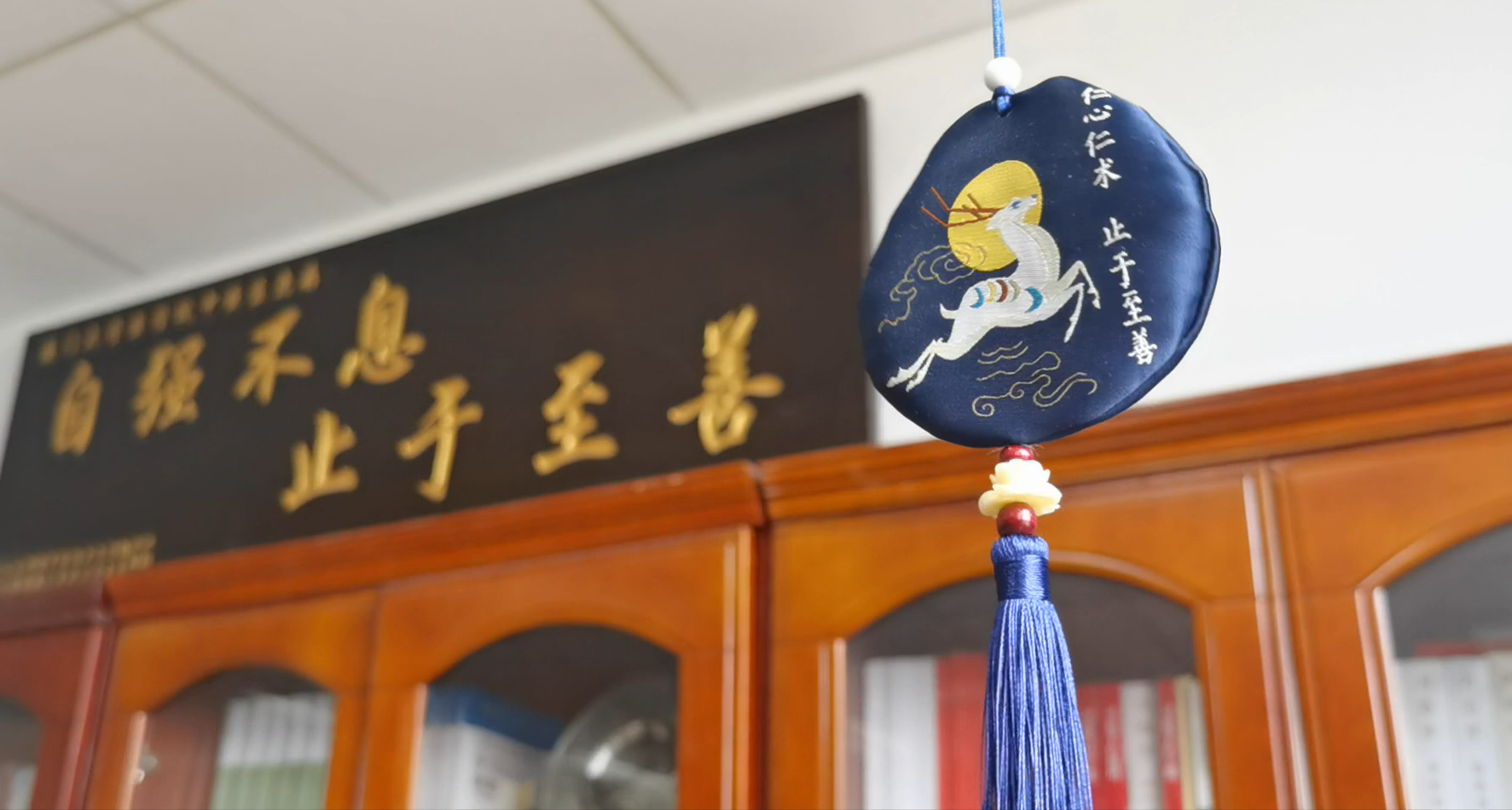 羲园定制款香囊以中国古代传说中的神奇动物九色鹿为主题设计而成。在中国古代文学、绘画、雕塑等艺术形式中,九色鹿经常出现,被视为一种吉祥的象征。本款定制香囊不仅饱含着全体师生祝愿毕业生们一路平安的美好寓意,也寄托着全体教师对同学们在医学道路上志存高远、脚踏实地的殷切期望。
