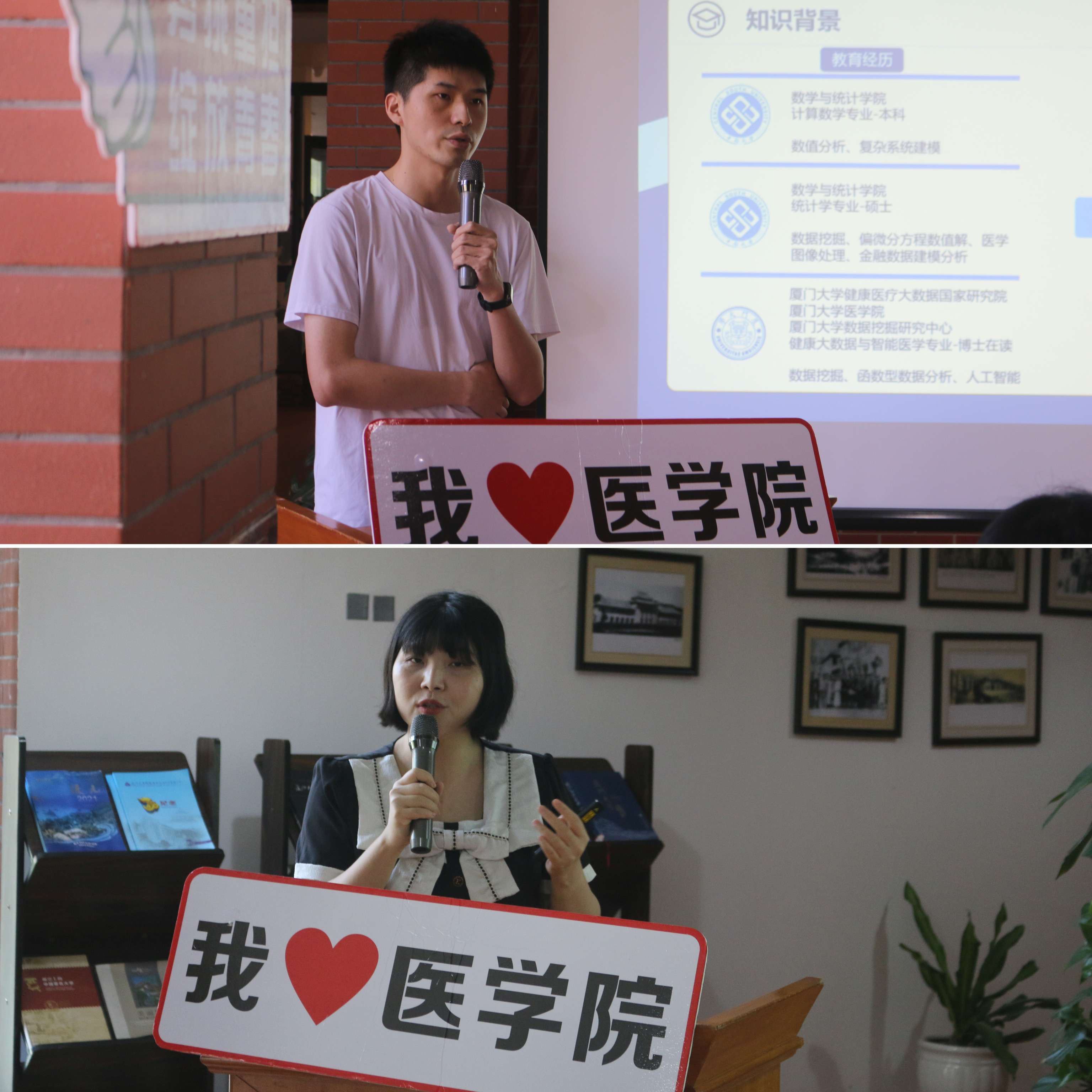 本期学术沙龙以主讲人分享、嘉宾点评、提问互动为主要环节。健康大数据与智能医学专业2021级博士研究生翁福添以《背靠理论·面向应用——人工智能赋能医疗大数据》为题,从知识背景、人工智能时代、大数据驱动范式、案例分析、未来展望五个方面带来了“人工智能+医学”的精彩分享。眼科学专业2019级博士研究生郭俞利以《认识睑板腺功能障碍:从发病机制到干细胞治疗》为题,围绕睑板腺的概念、功能以及睑板腺功能障碍的影响因素、发病机制、治疗方向,展示了睑板腺功能障碍研究发展新路径。