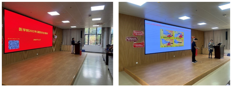 11月3日,学院在爱礼楼第一书堂举行消防安全宣传月活动启动仪式,活动的主题是“抓消防安全,保高质量发展”。本次活动由医学院副院长谢莉萍主持,谢院长指出消防安全事关全体师生生命安全、财产安全,意义非同寻常。希望大家以此次消防月为契机,掌握灭火器的使用方法,增强消防安全意识,提升扑灭初期火灾的能力。