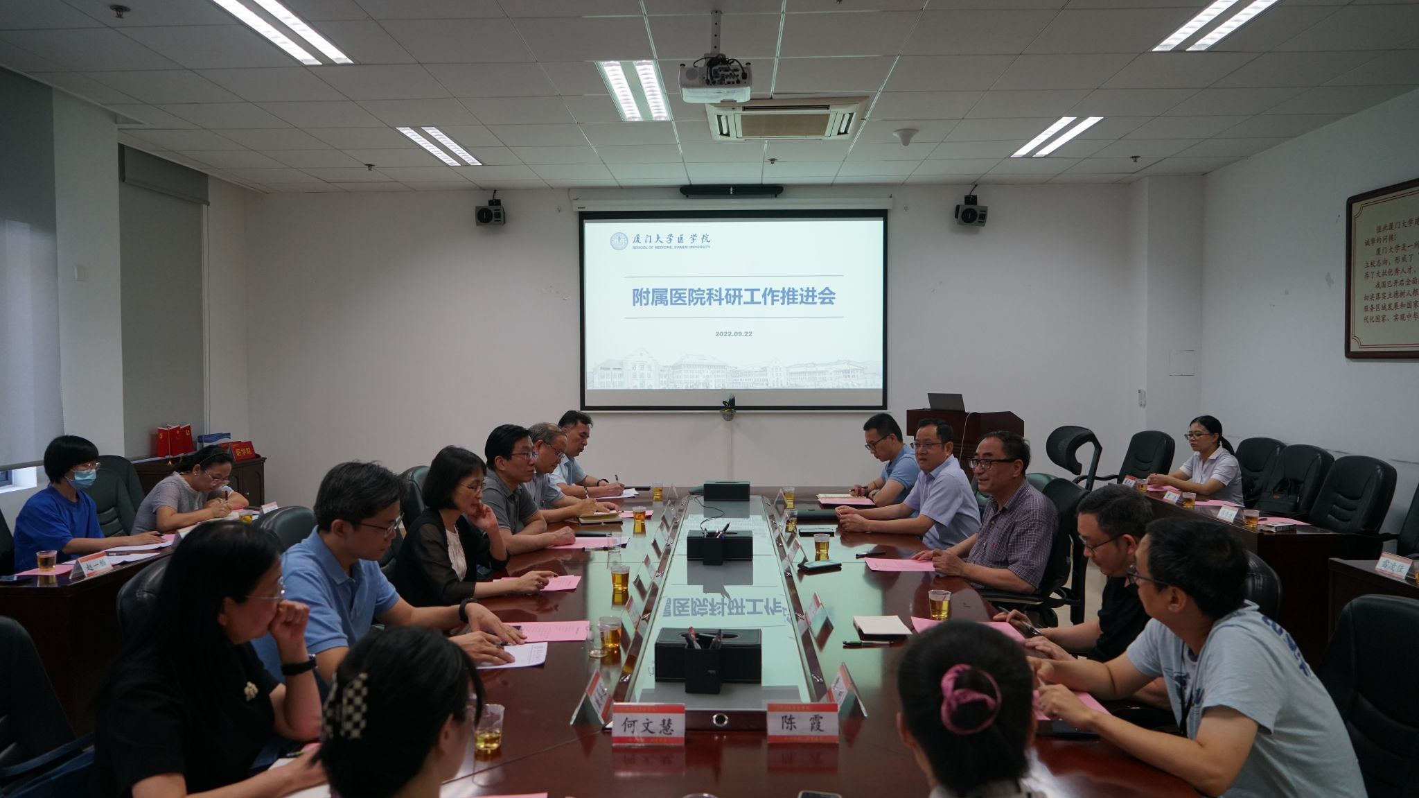 9月22日下午,附属医院科研工作推进会在医学院爱礼楼103会议室召开,各附属医院分管科研副院长及科研部门负责人参加了此次会议。医学院院长韩家淮院士、副院长李炜教授出席会议。