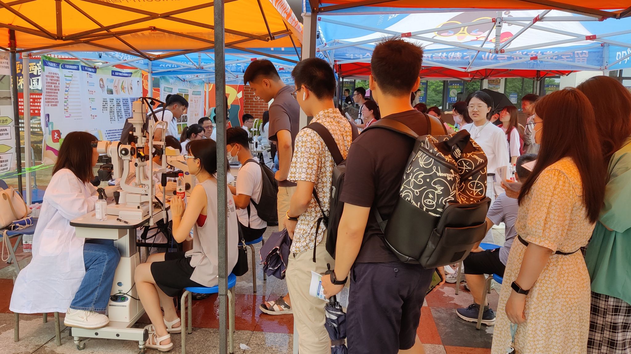 6月6日一早,天空飘起了淅淅沥沥的小雨,但活动准备工作有条不紊地进行,丝毫没有减弱同学们的参与热情。至活动结束,共有200余名师生参加了科普讲座、接受了义诊检查。