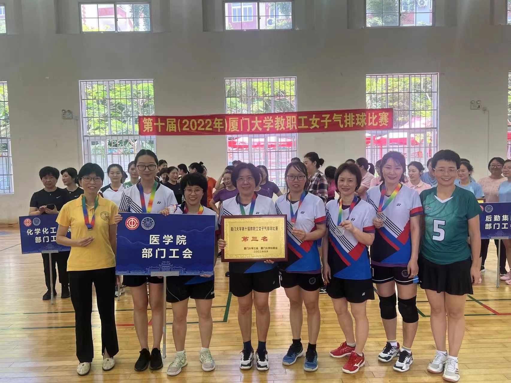 2022年5月28日、29日,厦门大学第十届教职工女子气排球比赛在思明校区风雨球馆举行。医学院女教工气排球队经过两日的顽强拼搏,最终夺得本次比赛季军。