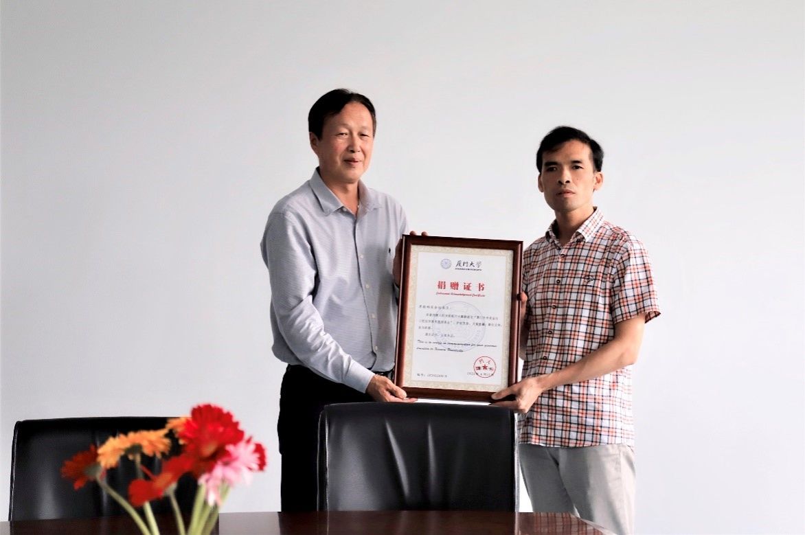 最后,在口腔医学系师生代表热烈的掌声中,薛茂强副院长为吴金行先生颁发捐赠证书并合影留念。