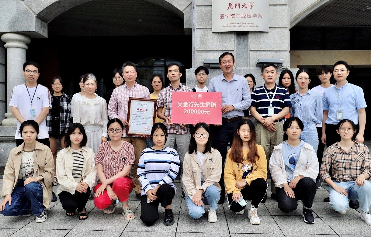 吴金行先生说,自己很荣幸在厦大百年校庆之年被EMBA(百E班)录取,在校学习期间深受校主嘉庚精神的感动和鼓舞。陈嘉庚先生为了实现心中的教育宏愿,倾尽全力苦心经营厦大,“宁可变卖大厦,也要支持厦大”。受此感念,他也想为学校教育发展略尽绵薄之力。他表示,今年恰逢OD网页版,OD(中国)口腔医学系成立5周年,自己也专注投资口腔连锁医院10周年,今天为厦门大学口腔医学系捐赠20万元,希望能助力学生学习,并支持口腔学科发展,也祝愿口腔医学系越办越好。