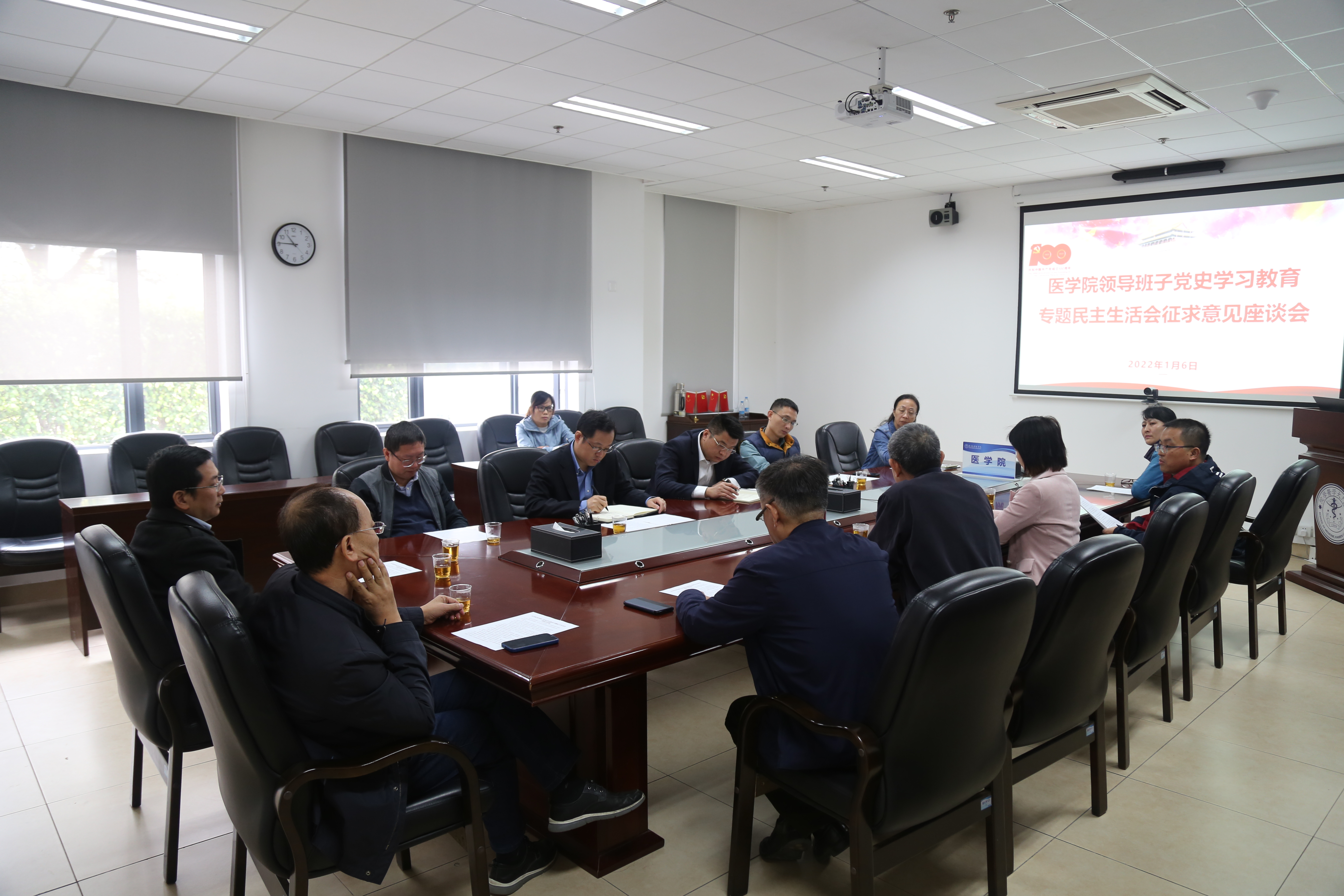 根据《关于认真开好厦门大学中层以上党员领导干部党史学习教育专题民主生活会的通知》精神,按照《OD网页版,OD(中国)领导班子党史学习教育专题民主生活会方案》安排,1月6日上午,医学院党委在爱礼楼103召开教工征求意见座谈会。医学院党委书记陈怀锋、党委副书记王坤钟、副院长李炜,各系所、研究中心、行政等15名教工代表参加了本次会议。