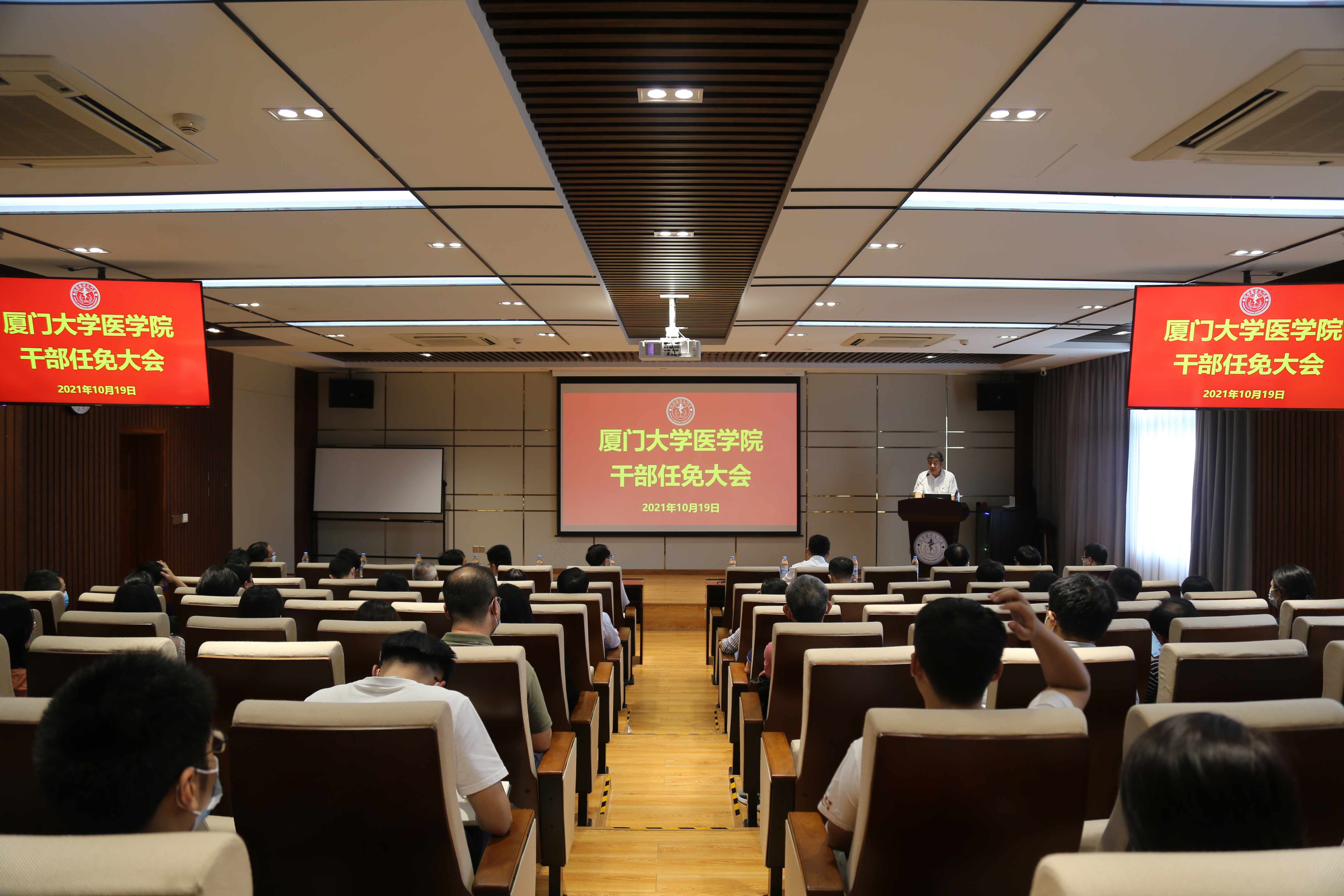 2021年10月19日下午,OD网页版,OD(中国)党委书记任免宣布大会在成义楼102报告厅召开,校党委副书记、纪委书记全海,校党委常委、组织部部长孙理,医学院党政领导班子成员、系部中心和行政部门负责人、科级以上干部、辅导员、党支部书记、支部委员等参加会议。会议由孙理主持。