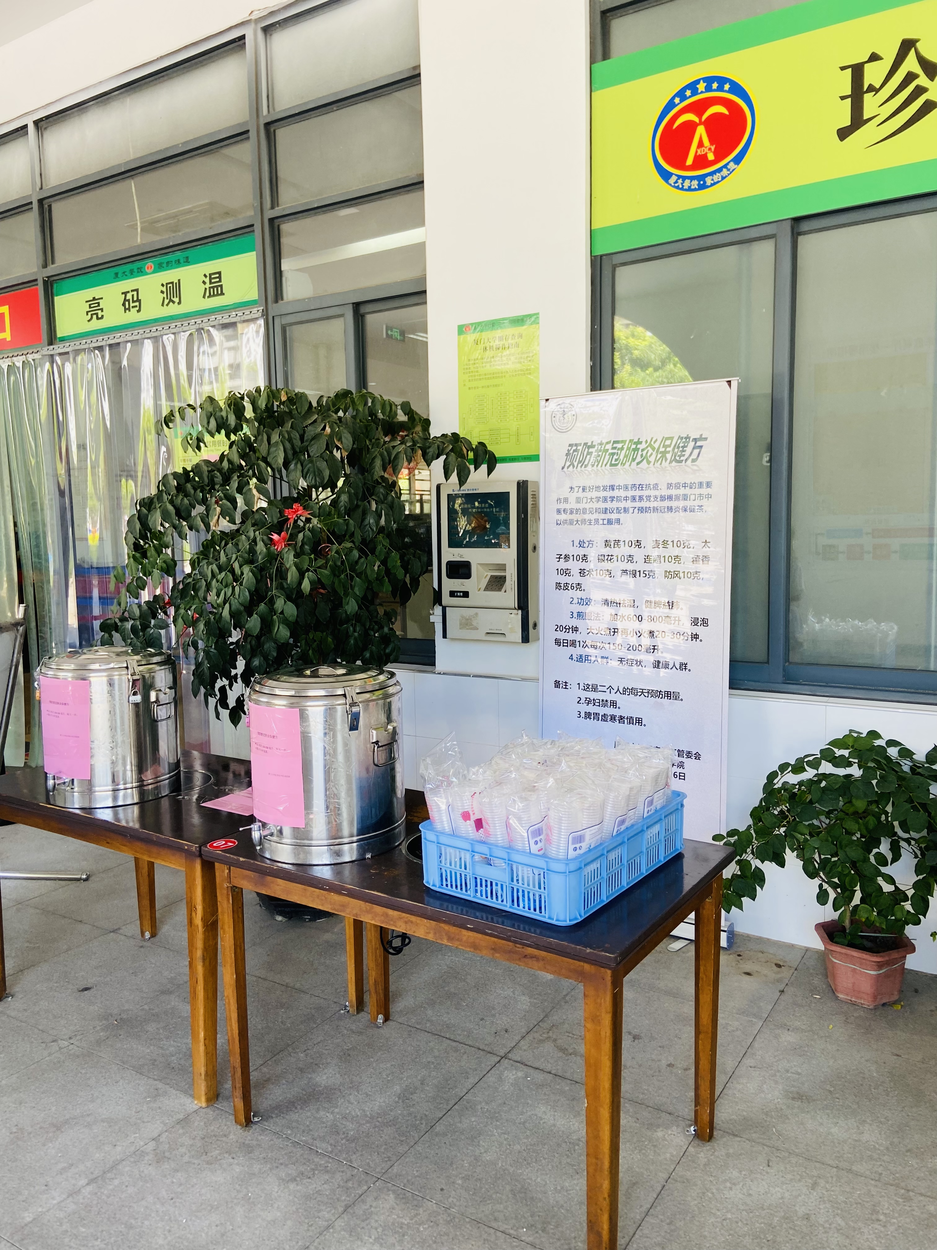 结合国家卫健委颁布的《新型冠状病毒肺炎诊疗方案(试行第八版)》和厦门多位中医专家的意见,同时考虑厦门本地气候及当地人体质特点,医学院中医系教工党支部多次调整处方,最终拟定“新冠肺炎中药预防保健处方”,包含黄芪、麦冬、太子参等10味药材,有清热祛湿、健脾益肺的功效,从而起到“正气存内、邪不可干”的预防作用。在翔安校区管委会、后勤集团及医学院党委的大力支持下,处方在思明校区、翔安校区的餐厅后厨熬煮后制备成“新冠肺炎中药保健处方汤药”,供全校师生员工免费服用,获得一致好评。