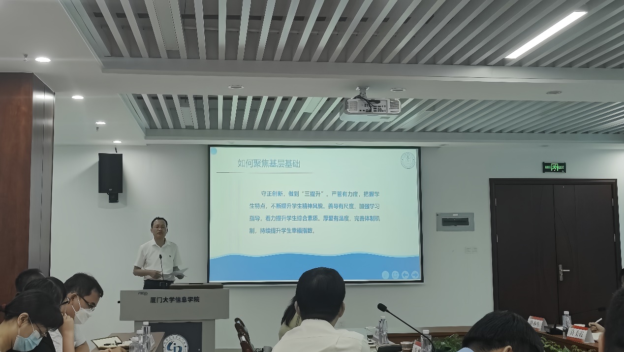 6月1日,学院党委书记李峰在学校学习贯彻习近平新时代中国特色社会主义思想主题教育学生工作大联学(首场)中作交流发言,介绍学院“仁心思政”体系建设的成效和思考。6月15日,学院邀请校党委宣传部部长高和荣教授在翔安校区德旺图书馆二号报告厅为学院师生作题为《中国式现代化的辩证思想》专题报告。