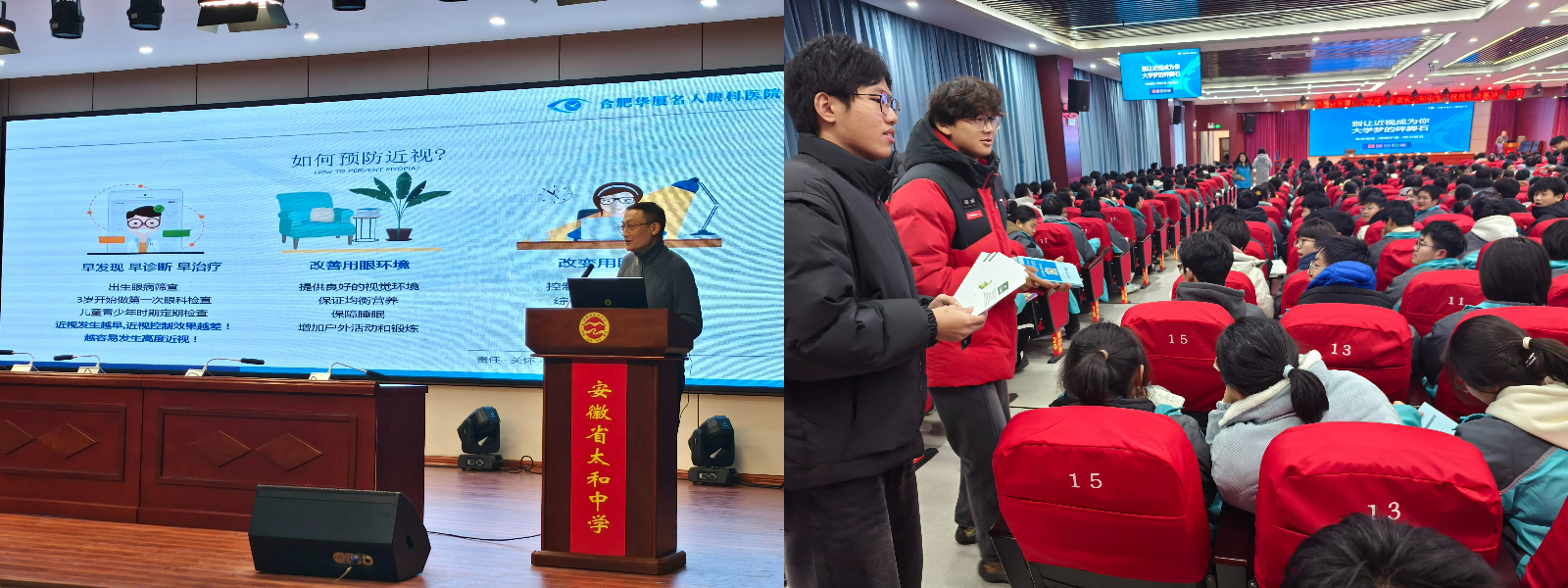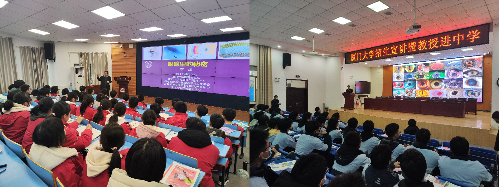 在太湖中学和安庆市第一中学,医学院副院长李炜教授为中学生们进行了主题为《眼睑里的秘密》的科普讲座。他以大自然各类生物的眼球图为导入,在互动中带领学生们一道欣赏眼球之美,激发了大家的学习热情。同时,他结合临床案例,指出日常用眼误区。讲座后,现场中学生们根据自身情况踊跃提问,李炜教授逐一解答,现场互动积极,气氛热烈。