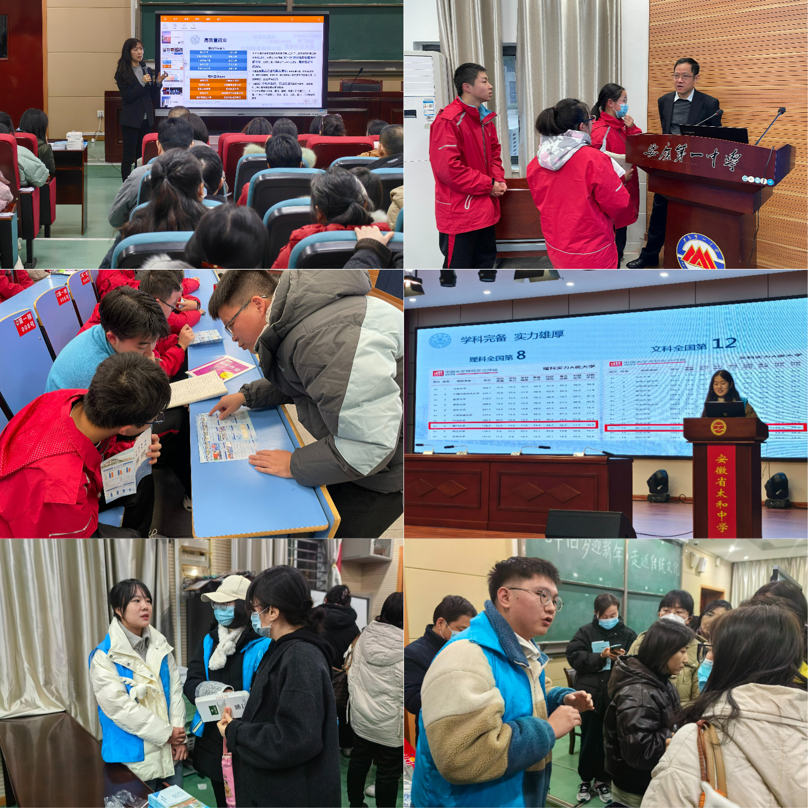 为积极落实学校本科招生工作部署,进一步做好2024年度招生宣传工作,吸引更多在皖优秀学子报考厦门大学,医学院结合团委寒假社会实践工作安排,组织开展赴安徽专项寒假社会实践活动。1月14日至18日,学院组织4支实践队伍,由学院党委书记李峰、党委副书记辛晓丹、副院长李炜带队,学院张家兴教授和团委以及教务办等8位老师与18名安徽籍本科生参与,分别赴安徽合肥、六安、阜阳和安庆,走进8所重点生源中学开展招生宣传、优质生源基地挂牌、科普讲座等活动,并带领学生走进安徽红色教育基地,感悟红色精神。