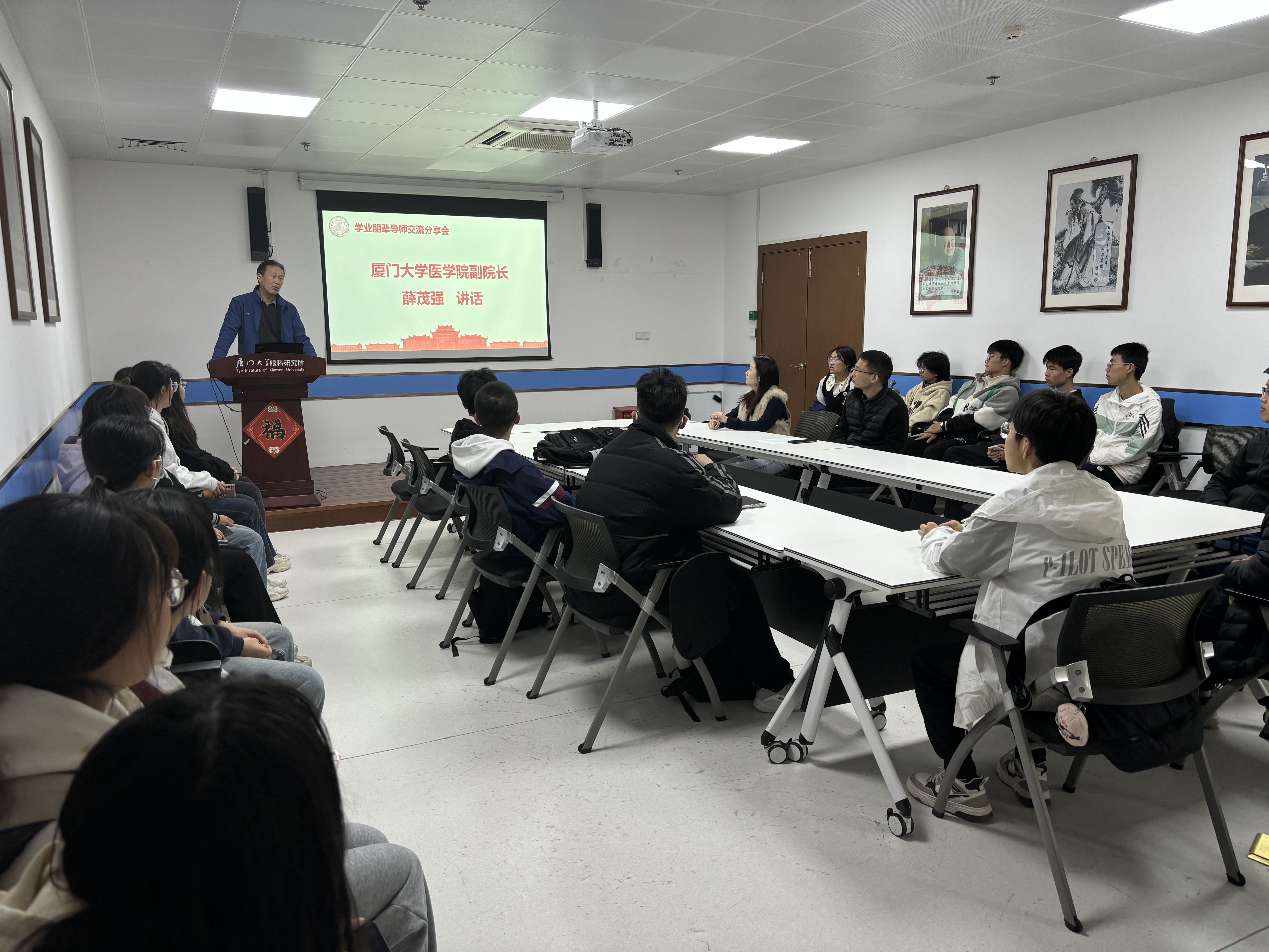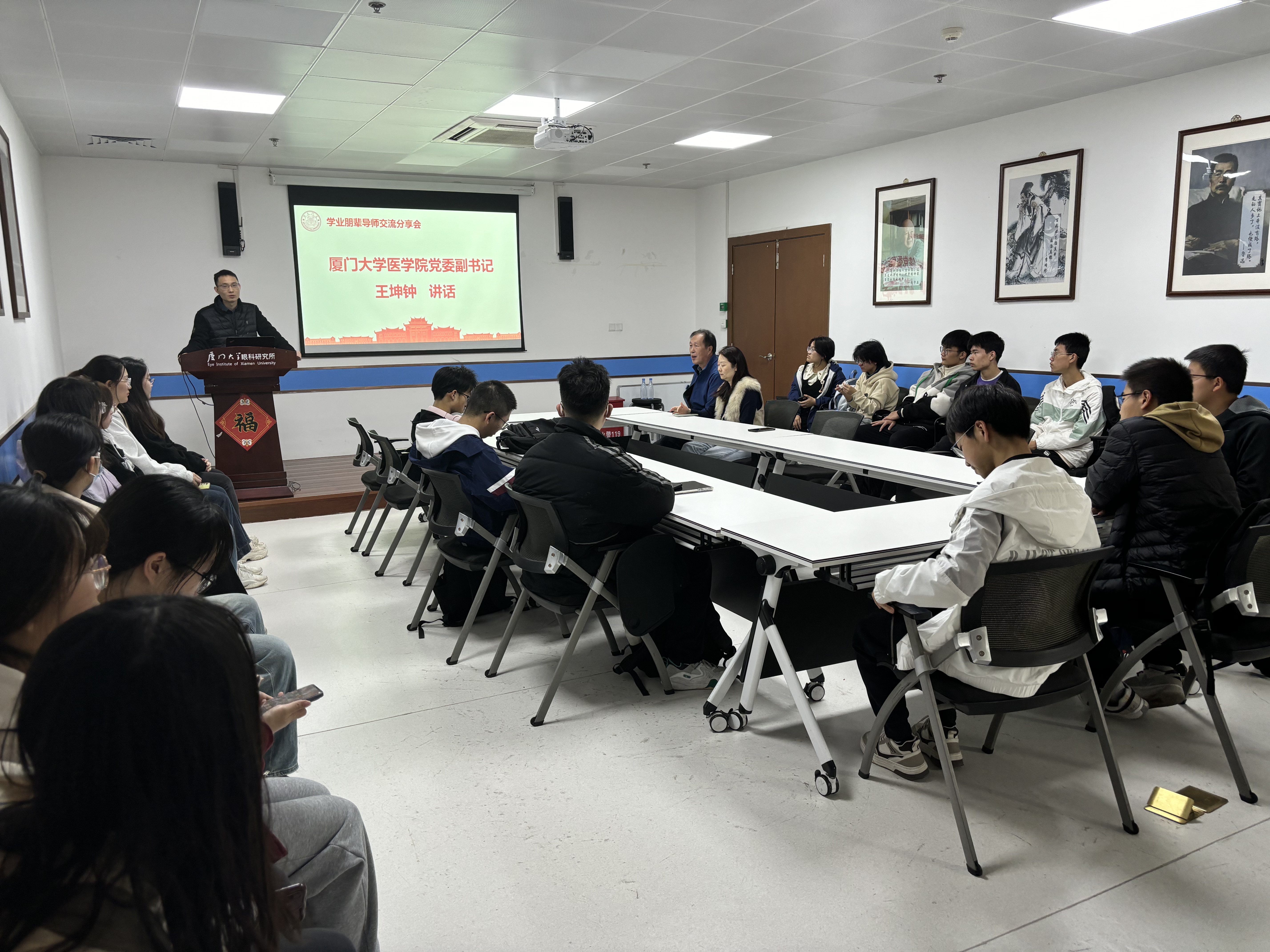 3月13日中午,医学院在翔安校区成义楼402会议室开展学业朋辈导师交流分享会,学院副院长薛茂强、党委副书记王坤钟、院长助理、教务办主任李晴出席分享会。