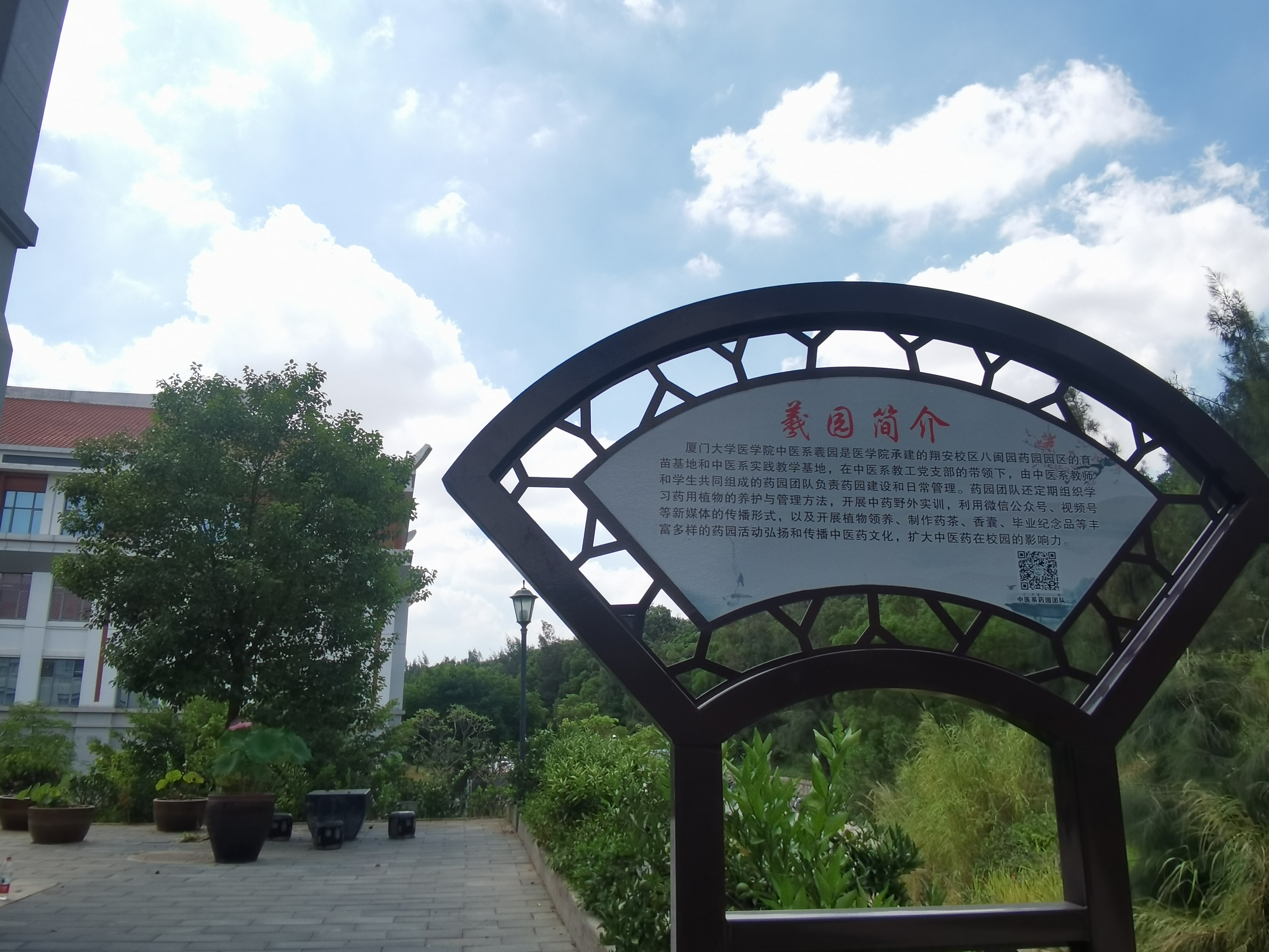 八闽园药园位于翔安校区北部、香山南麓,是一个集教学、科研、实践为一体的多功能药用植物园。目前园区内已种植有药用植物两百余种,并根据药用植物的科属、生长习性、中医药文化理念等划分为“红香圃”“丰泽圃”“橘井圃”“素心圃”“灵兰圃”等多个园圃。园区内还设立有中医药文化长廊。